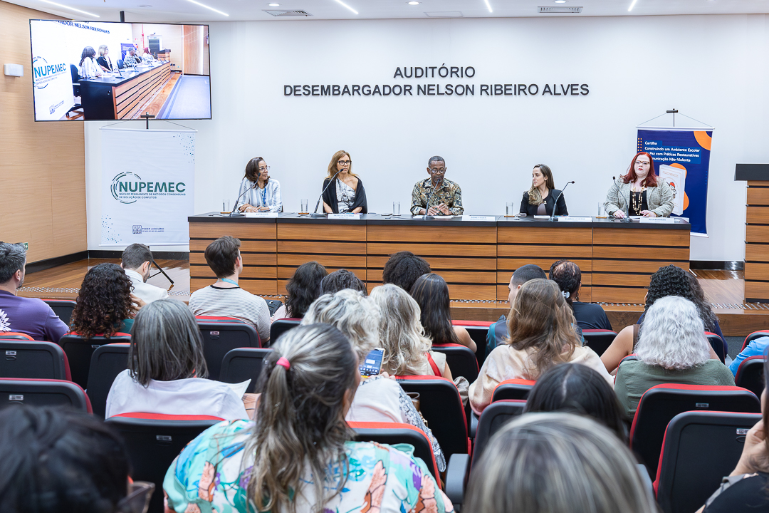 Com apoio do Núcleo Permanente de Métodos Consensuais de Solução de Conflitos (Nupemec) do TJRJ, a atividade reuniu representantes de diversas instituições no Auditório Desembargador Nelson Ribeiro Alves, que debateram e compartilharam suas experiências na busca por garantir que as escolas sejam um espaço de convivência pacífica.