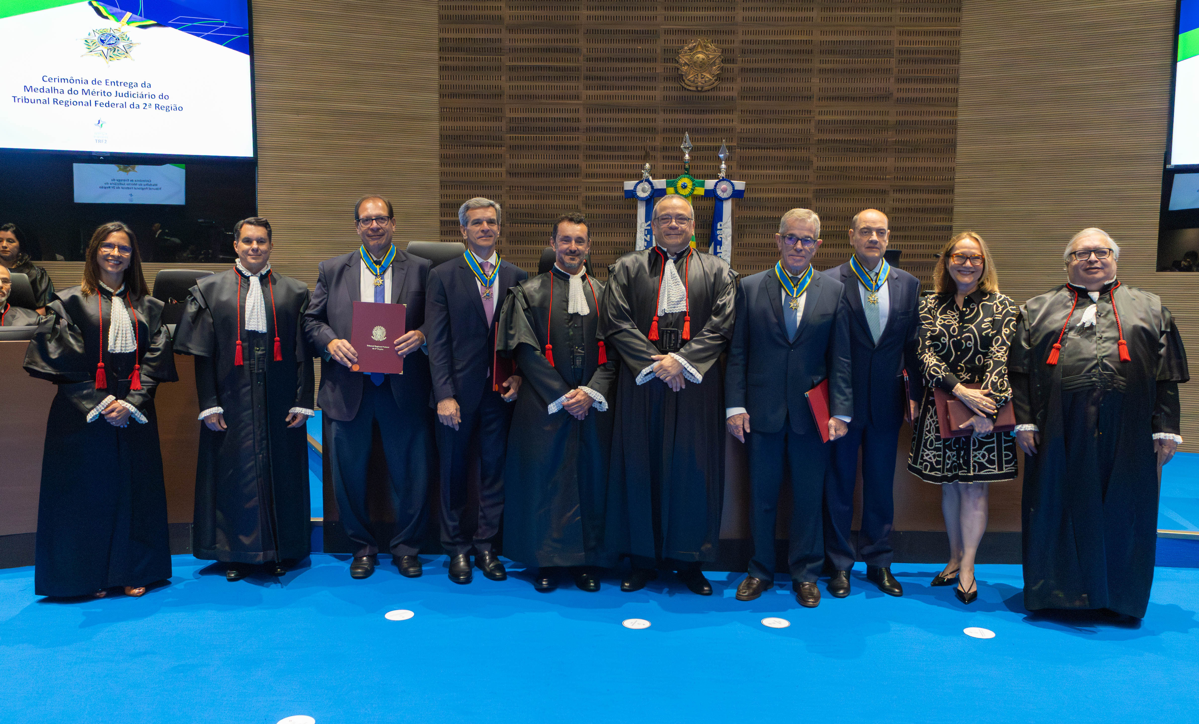 Uma medalha concedida a personalidades que se destacam pela contribuição à valorização e ao aprimoramento do Poder Judiciário. A Cerimônia de Outorga da Medalha de Mérito Judiciário do Tribunal Regional Federal da 2ª Região (TRF2) foi marcada pelo simbolismo da união. A solenidade ocorreu nesta sexta-feira, 14 de novembro, no plenário do TRF2.