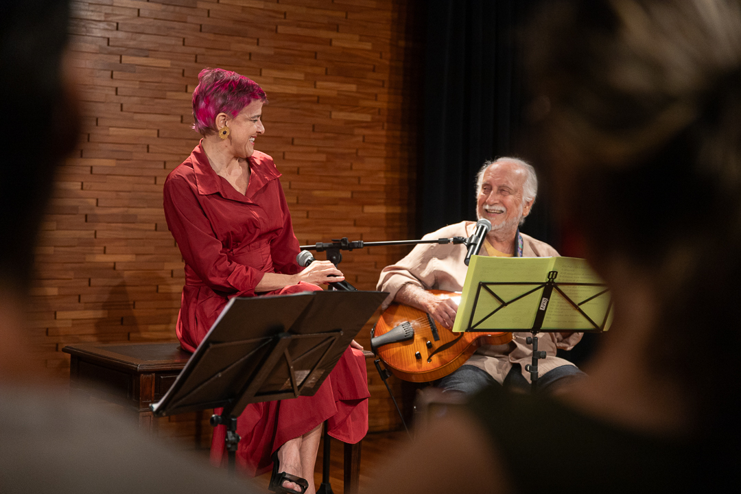 Cris Delanno e Roberto Menescal durante apresentação do show Lado B da Bossa