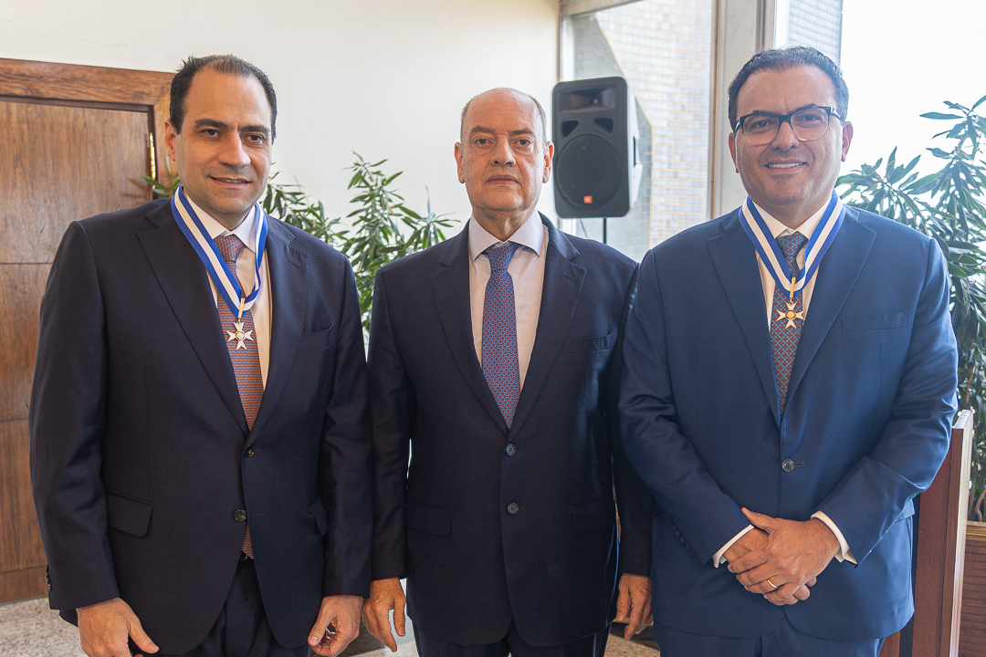 O Colar do Mérito Judiciário reconhece personalidades que prestam relevantes serviços à Justiça fluminense. Nesta sexta-feira, 12 de dezembro, o presidente do Tribunal de Justiça do Rio de Janeiro (TJRJ), desembargador Ricardo Couto de Castro, realizou, no Salão Nobre, a cerimônia de entrega da honraria ao presidente da Ordem dos Advogados do Brasil, José Alberto Ribeiro Simonetti Cabral, e ao ex-presidente do Conselho Federal da OAB, Marcus Vinicius Furtado Coêlho. Os dois agraciados não puderam comparecer ao evento oficial realizado no Dia da Justiça, em 8 de dezembro.