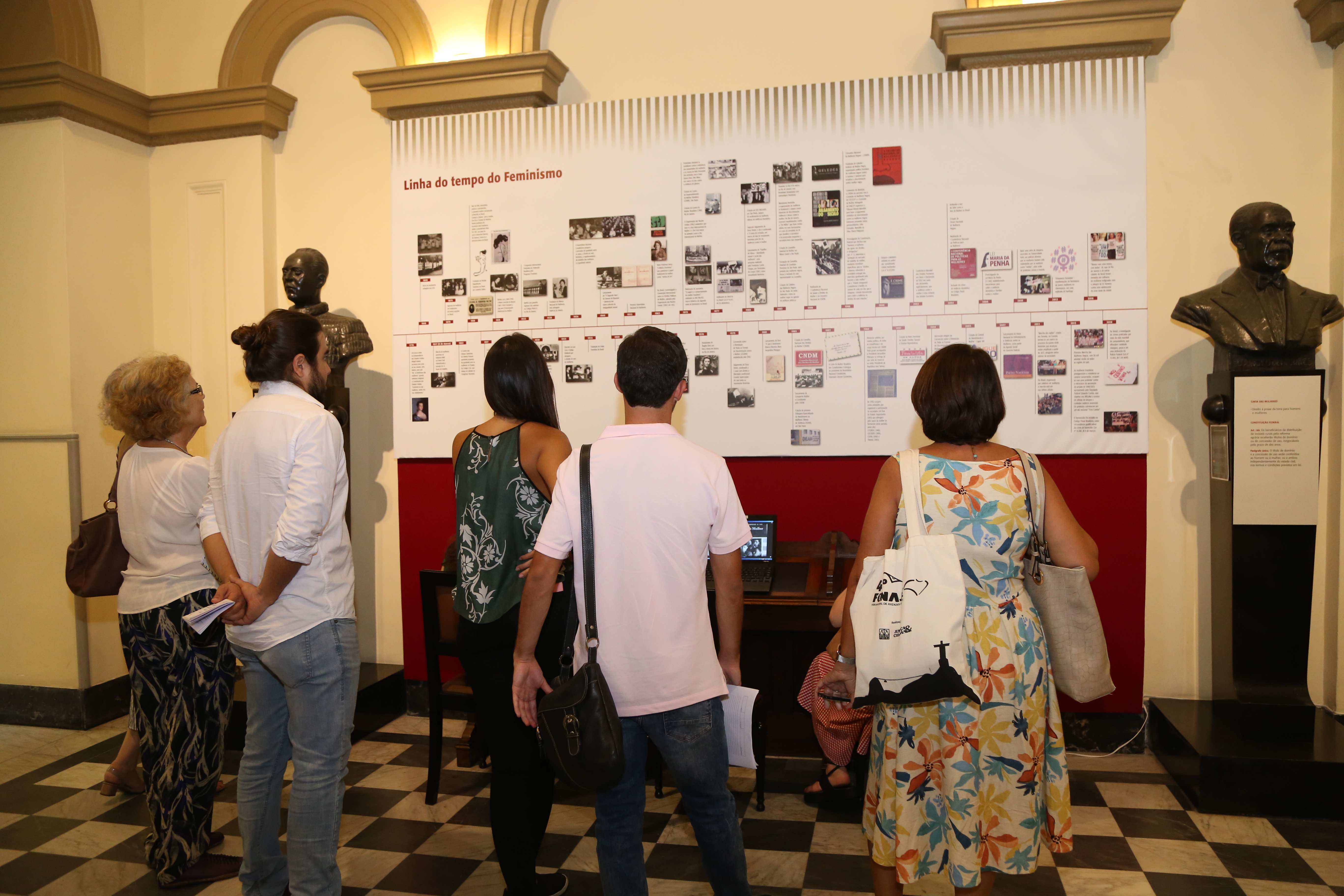 Montada no Salão dos Passos Perdidos, antessala do I Tribunal do Júri, situado no segundo pavimento do Antigo Palácio da Justiça do Rio de Janeiro, a exposição apresenta, ainda, uma linha do tempo do movimento feminista no mundo, destacando a carta que Abigail Adams escreveu ao marido em 1776, pouco antes da independência dos Estados Unidos, com um alerta para quando ele estivesse redigindo a Constituição dos Estados Unidos: “Lembre-se das mulheres, senão nós nos revelaremos.”; o início do movimento americano, em 1848, a marcha das mulheres operárias da indústria têxtil em Nova York, no dia 8 de março de 1857.