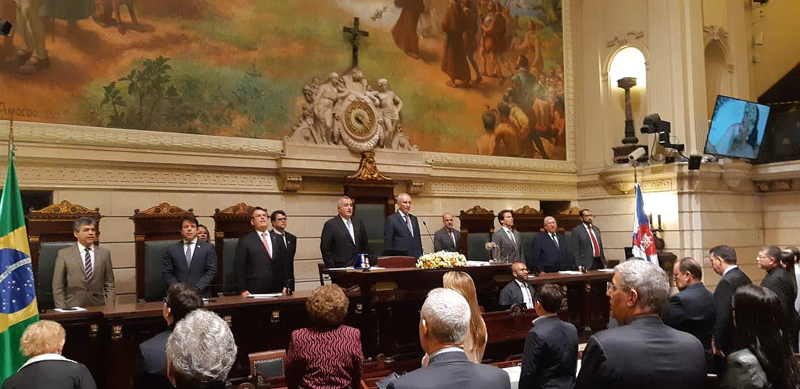 O presidente da Casa Legislativa, vereador Jorge Felipe, e o vereador Dr. Carlos Eduardo deram as boas-vindas ao presidente do TJRJ na mesa de abertura da cerimônia, composta pelo presidente do Tribunal Regional Eleitoral, desembargador Carlos Santos Oliveira; deputado Carlos Caiado, representando o presidente da Alerj; subprocurador-geral da República, Alcides Martins; procurador-geral do Estado do Rio de Janeiro, Marcelo Lopes da Silva; e procurador-geral do Município do Rio, Marcelo Silva Moreira Marques.