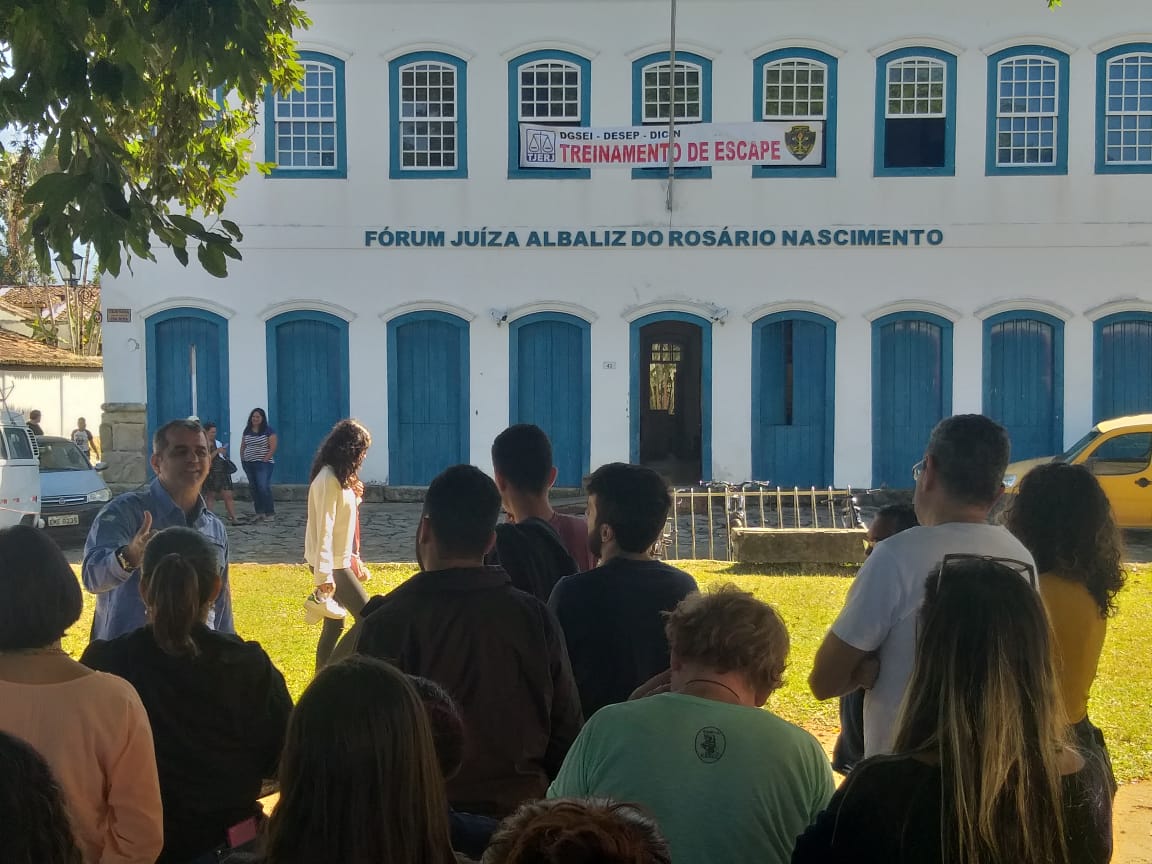 Servidores e funcionários do Fórum Juíza Albaliz Rosário do Nascimento, na Comarca de Paraty, receberam, no período de 10 a 12 de julho, palestras e treinamento simulado de escape prático.