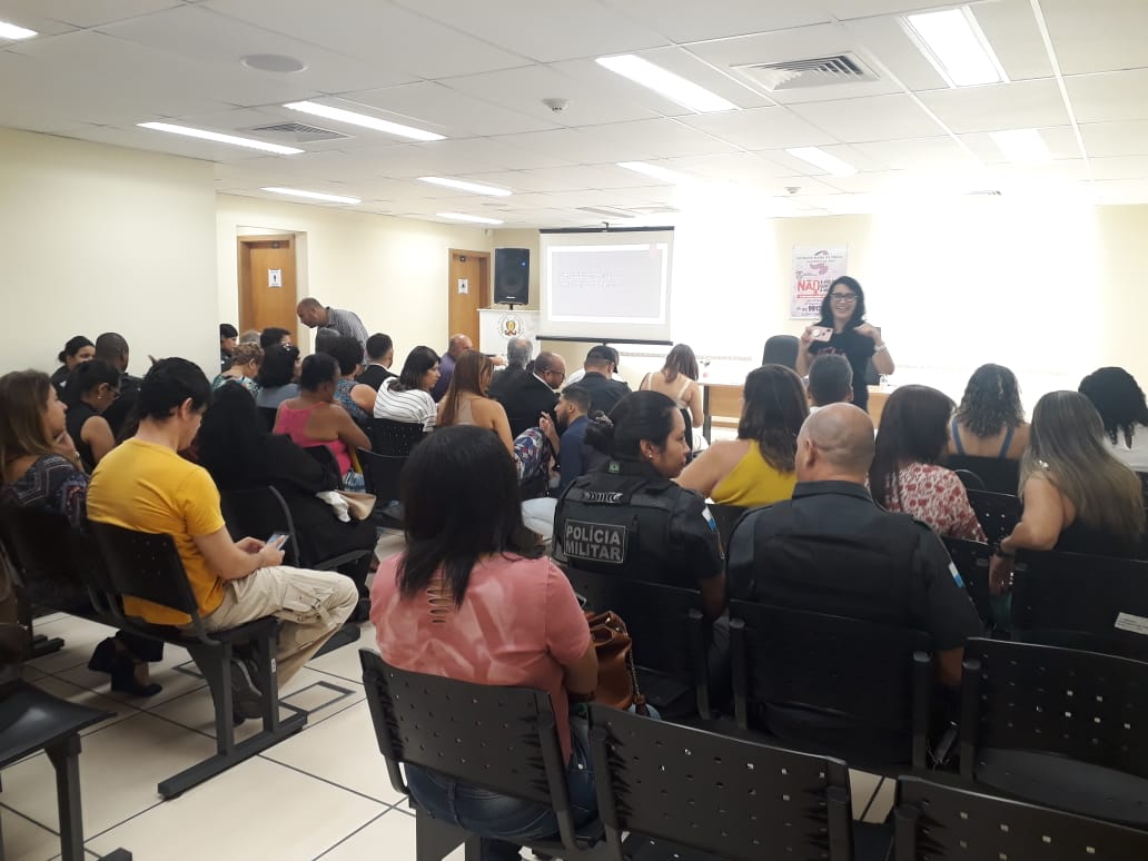 A juíza Juliana Cardoso Monteiro de Barros, titular da 2ª Vara Criminal e Juizado da Violência Doméstica e Familiar Contra a Mulher da Comarca de Itaboraí, palestrou sobre o tema ‘Desdobramentos da Lei Maria da Penha’. Já a major PM Claudia Moraes, subchefe do Escritório do Programa de prevenção da PMERJ, falou sobre ‘A atuação da patrulha – Guardiões da vida’.