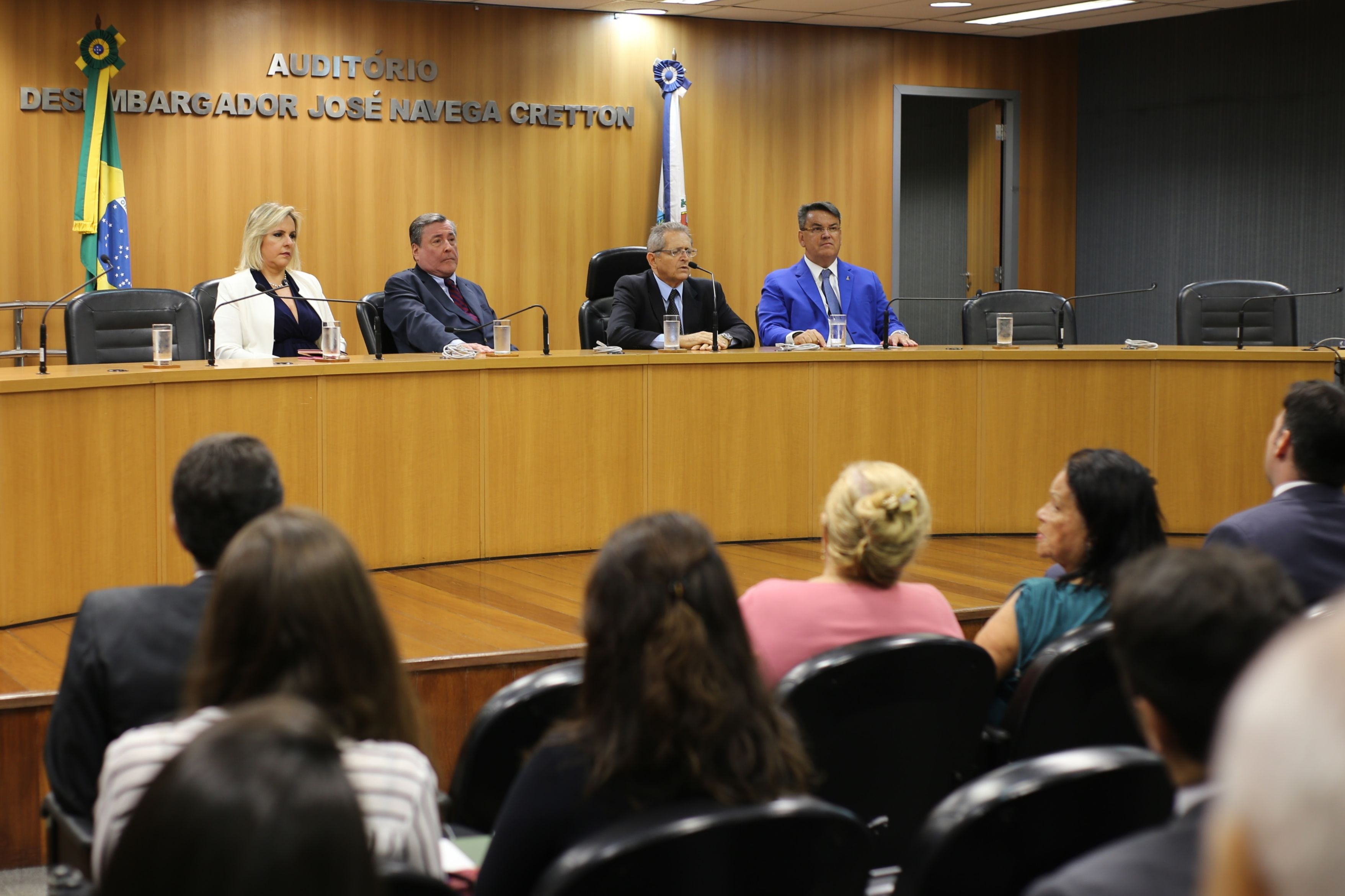 Na mesa, os desembargadores Cláudia Pires, Bernardo Garcez, Fábio Dutra e Claudio de Mello Tavares