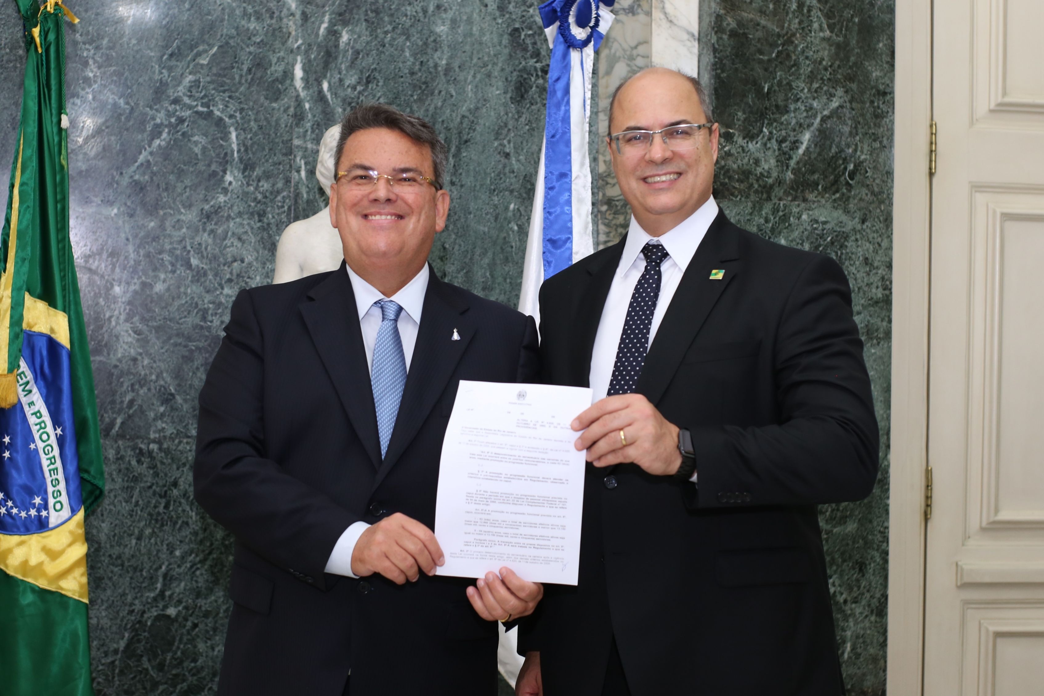 Agora é lei. O governador Wilson Witzel assinou, no início da noite desta terça-feira (19/11) o projeto de lei nº 1461/2019, que permite a progressão funcional dos servidores do Judiciário Fluminense a cada dois anos, desde que obedecidas algumas regras como a de capacitação. O texto, que altera a Lei 4.620/2005, modificando o critério de evolução funcional dos servidores, foi aprovado à tarde na Assembleia Legislativa com 46 votos favoráveis e três contrários. O projeto de lei foi elaborado pelo próprio presidente do Tribunal de Justiça do Estado Rio, desembargador Claudio de Mello Tavares, que se empenhou pela sua rápida aprovação. Tendo em mãos a lei aprovada pela Alerj, ele foi até o Palácio Guanabara para que o documento fosse assinado pelo governador.