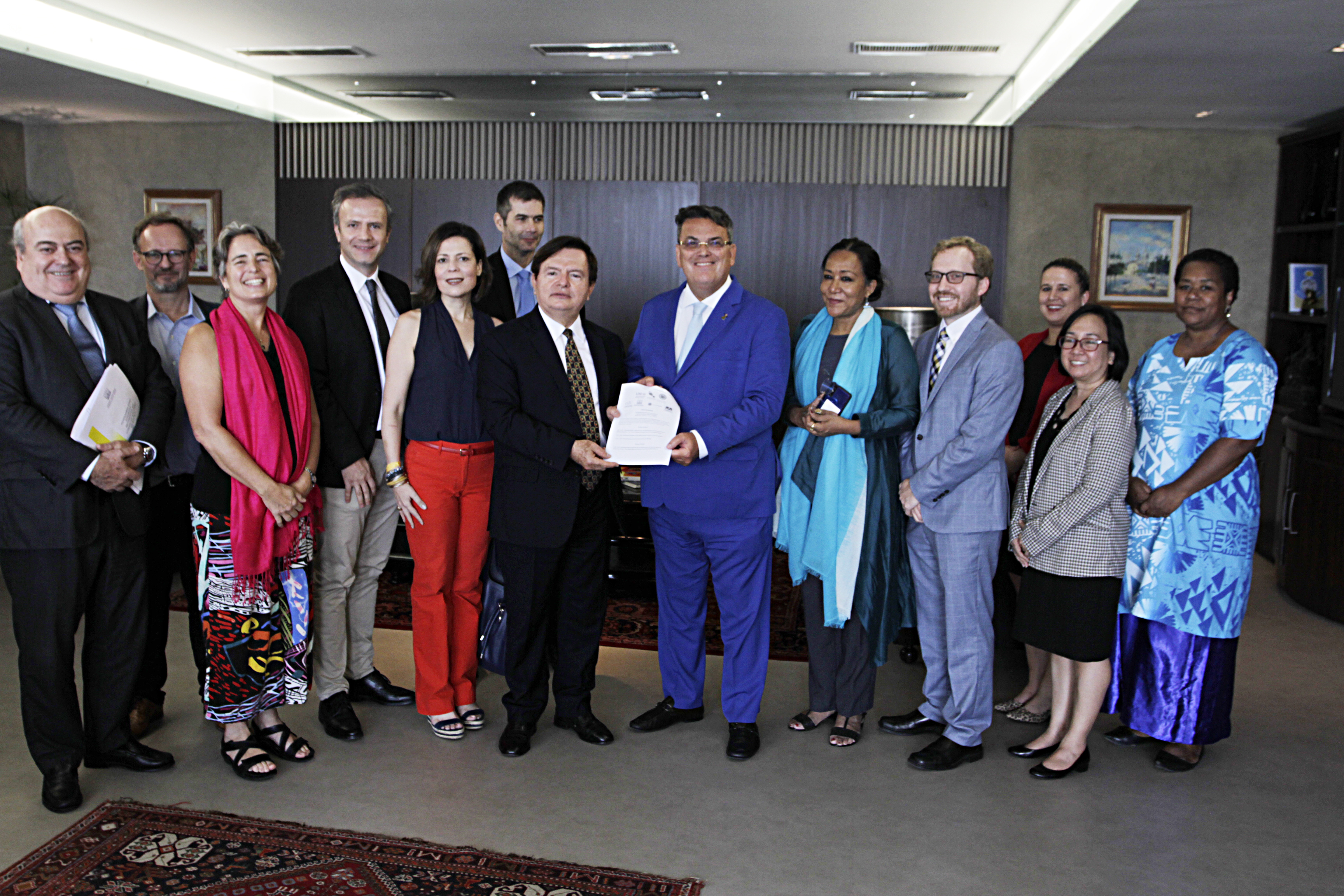 O ministro Herman Benjamin, do Superior Tribunal de Justiça (STJ), esteve nesta sexta-feira (13/12) no gabinete do presidente do Tribunal de Justiça do Estado do Rio de Janeiro, acompanhado de uma comitiva de representantes da Organização das Nações Unidas (ONU), para convidar o desembargador Claudio de Mello Tavares para abrir o 2º Congresso Mundial de Direito Ambiental, que acontecerá no Rio de Janeiro, de 23 a 27 de março de 2020.
