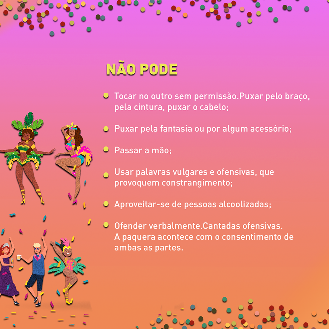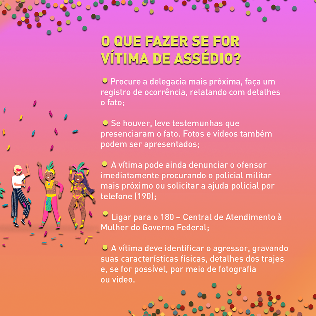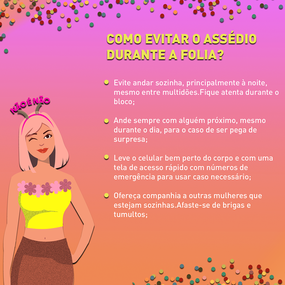 Segundo estudo da ONG ActionAid divulgado ano passado, 53% das mulheres brasileiras entre 14 e 21 anos convivem diariamente com o medo de serem assediadas. E esse medo se amplia quando nos aproximamos de eventos como o carnaval, em que há a combinação de bebida, festa e multidão.