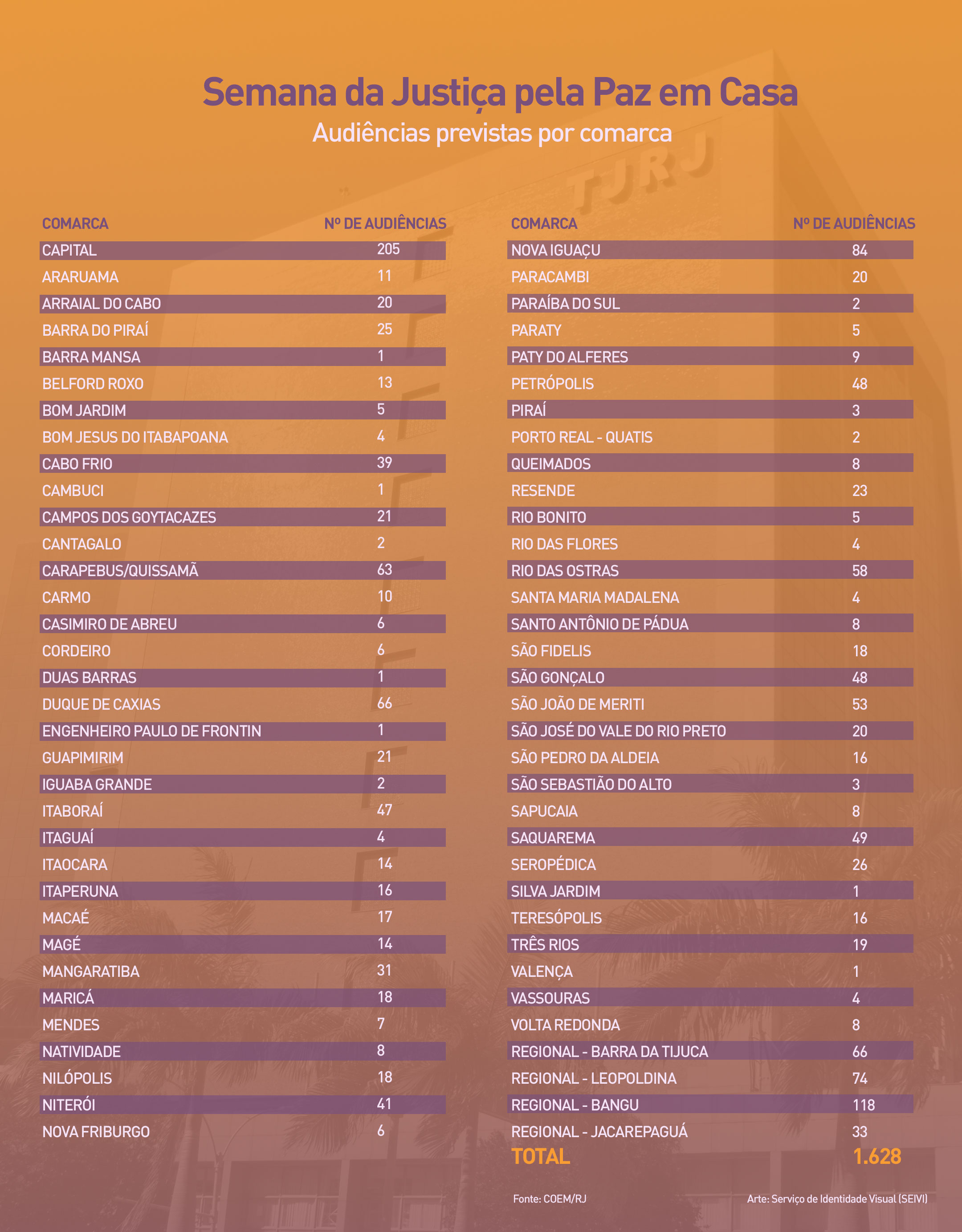 Promovido pelo Conselho Nacional de Justiça em parceria com os Tribunais de Justiça estaduais, o Programa Justiça pela Paz em Casa busca ampliar a efetividade da Lei Maria da Penha (Lei nº 11.340/2006). Além de agilizar os processos por concentrar esforços, a Semana da Justiça Pela Paz em Casa oferece um quadro incentivador para que as mulheres vítimas de violência doméstica denunciem seus agressores e busquem proteção.