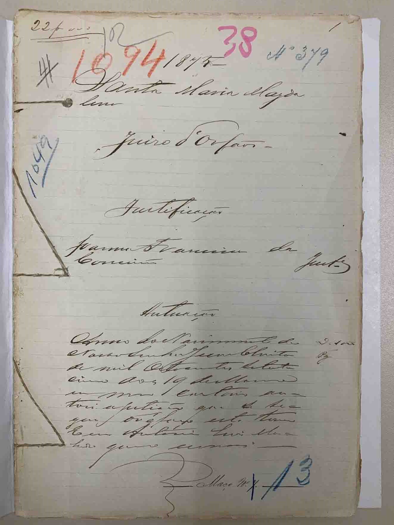 À esquerda, capa do processo do “preto" Theodoro, que pretendia pagar pela liberdade da escrava "preta crioula" Maria; à direita, o processo do menor Honório, criança que nasceu livre, mas não pode ficar com a mãe, que era escrava
