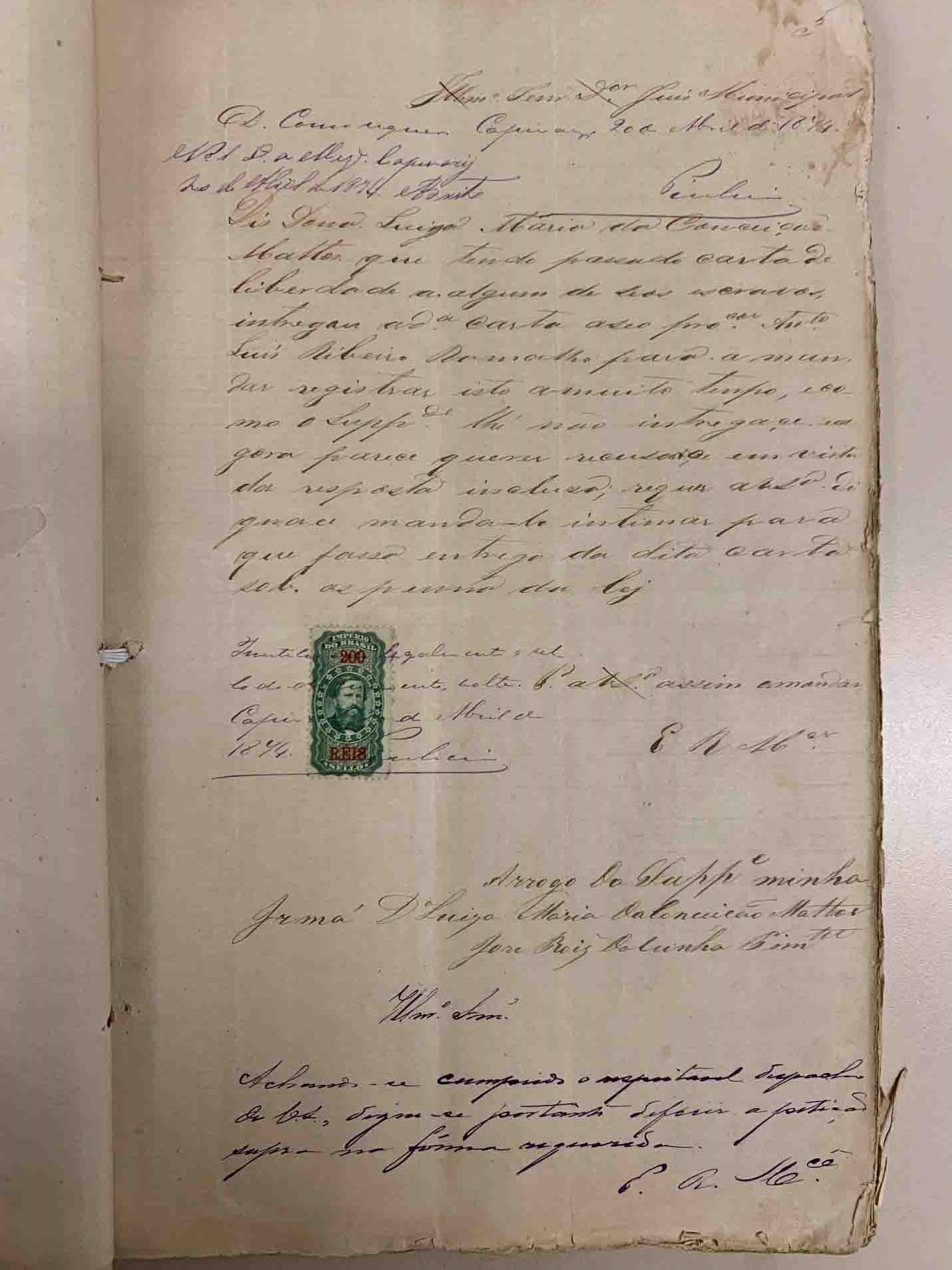 - O direito de ser livre, em algumas ocasiões, era concedido pelos próprios senhores. Um dos exemplos é o do casal Luis Ribeiro Ramalho e Luiza Maria da Conceição Mattos, que alforriaram sete escravos . Mas muitos senhores lutavam contra a liberdade de seus escravos, como se visualiza processo movido por Julião Baptista Pereira contra o liberto João de Nação.