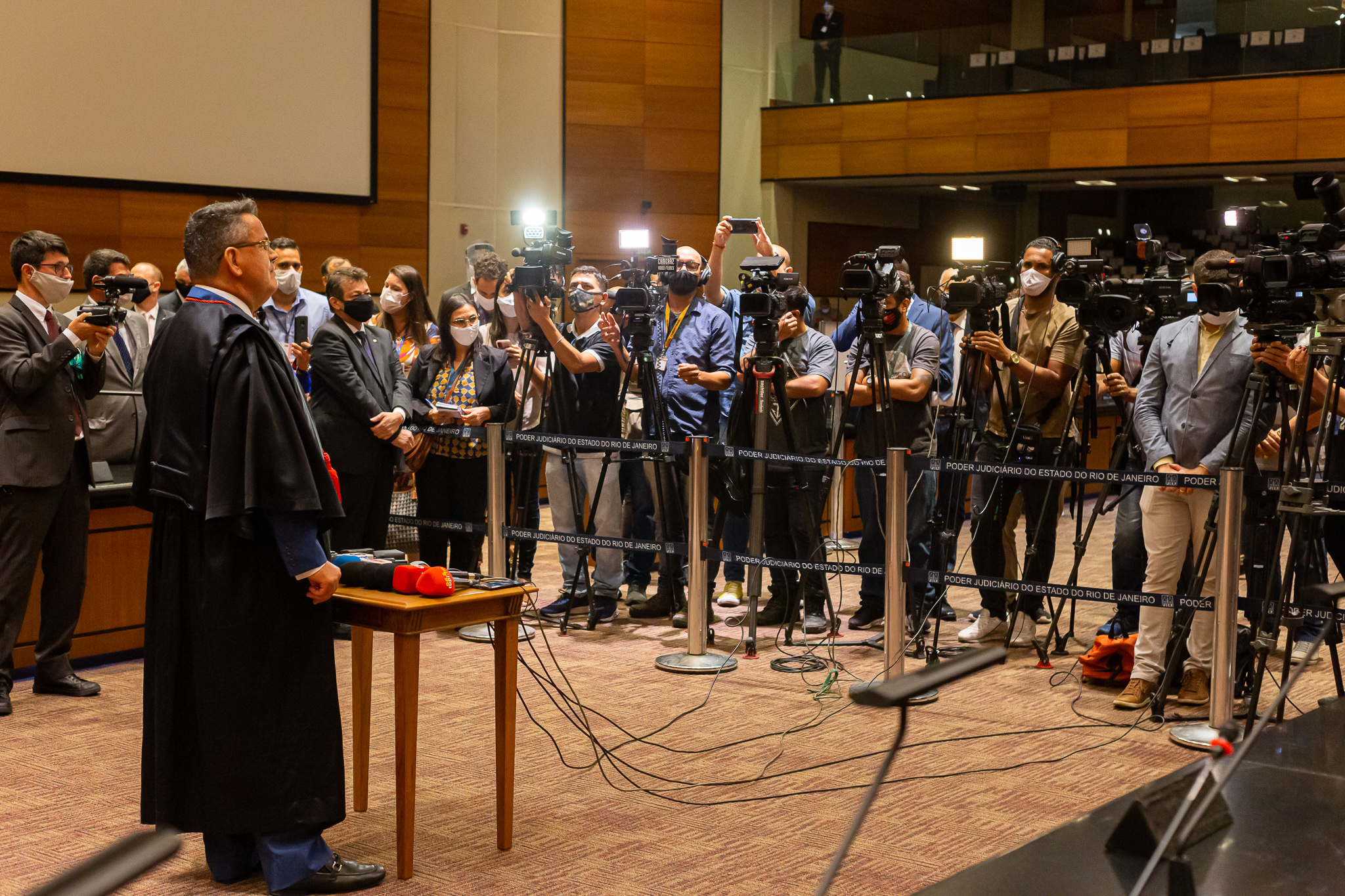 A sessão extraordinária foi comandada pelo presidente do TJ do Rio, desembargador Claudio de Mello Tavares, com a participação presencial de outros 18 desembargadores no plenário do Tribunal Pleno, enquanto os demais participaram por videoconferência. A sessão foi aberta aos profissionais da imprensa e transmitida em tempo real através da plataforma Cisco Webex, e também pelos canais do TJRJ no YouTube, no Facebook e no Instagram.