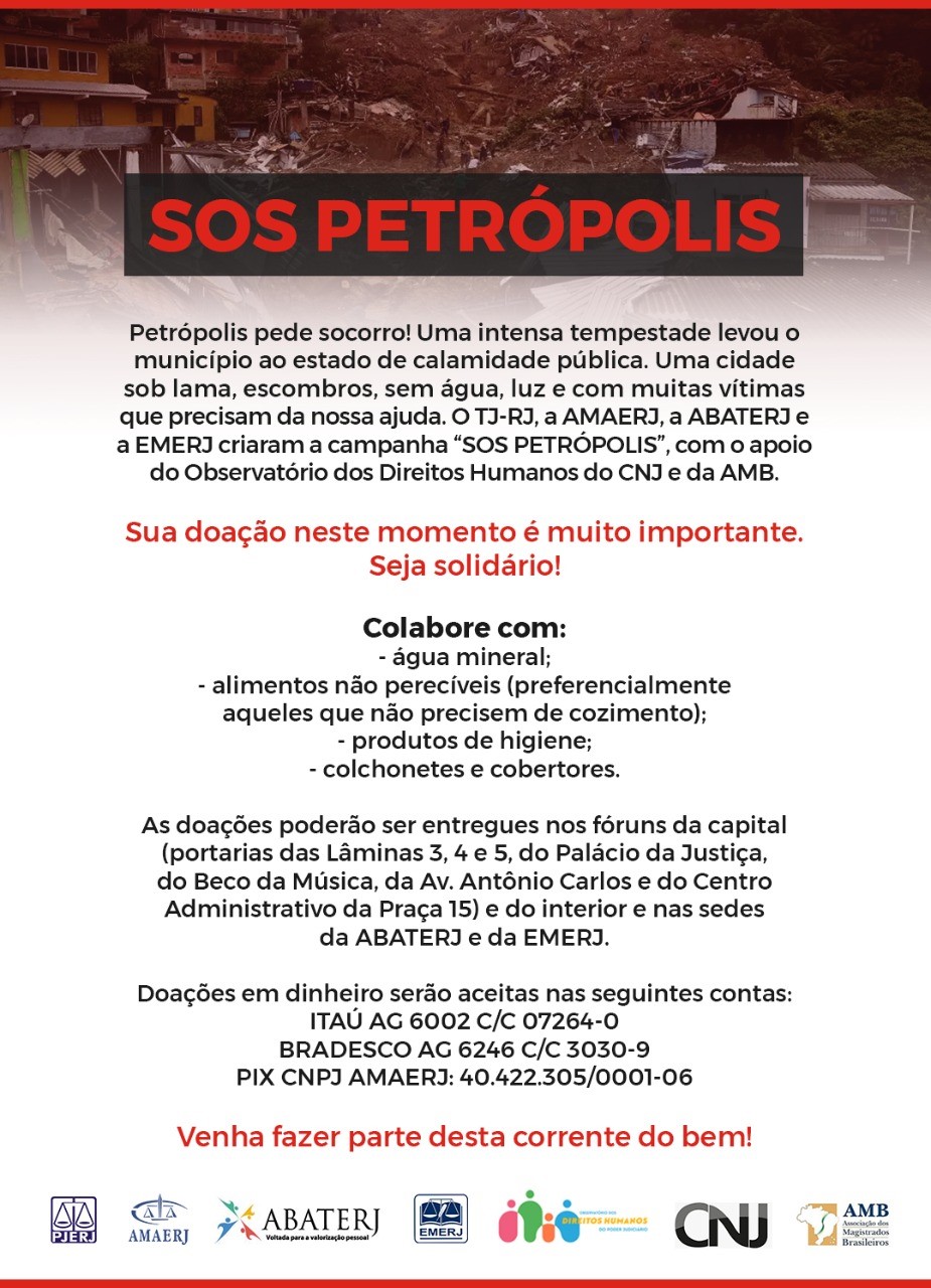 TJRJ, Amaerj, Abaterj e Emerj lançam a campanha ‘SOS Petrópolis’