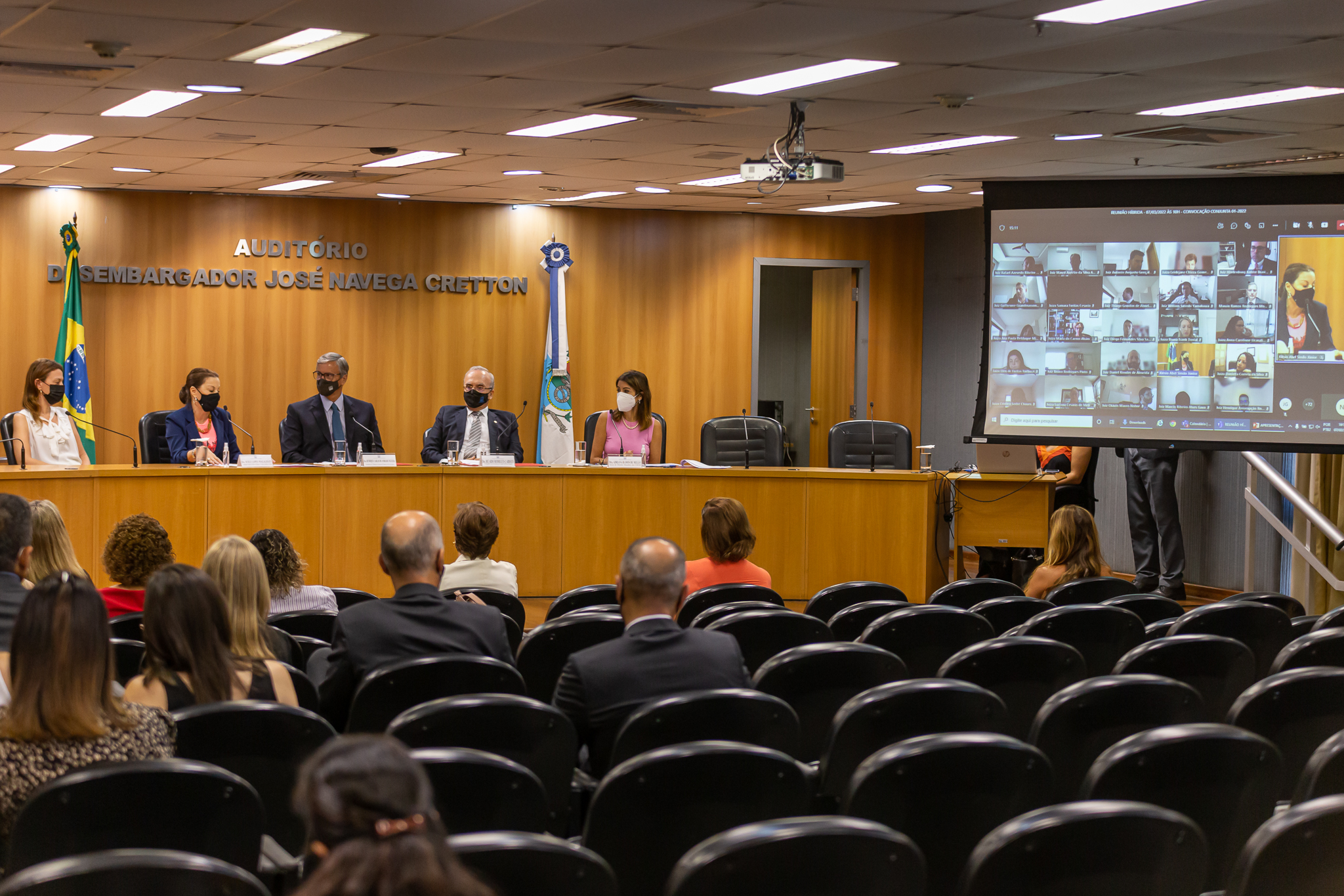O encontro, realizado na manhã desta terça-feira no auditório Desembargador José Navega Cretton, no Fórum Central, foi feito de forma híbrida, através da plataforma Teams, e contou com a presença do presidente do TJRJ, desembargador Henrique Carlos de Andrade Figueira; do corregedor-geral da Justiça, desembargador Ricardo Rodrigues Cardozo; da juíza Adriana Ramos de Mello, membro da COEM; e da presidente da Associação dos Magistrados do Estado do Estado do Rio de Janeiro (AMAERJ), juíza Eunice Bitencourt Haddad.