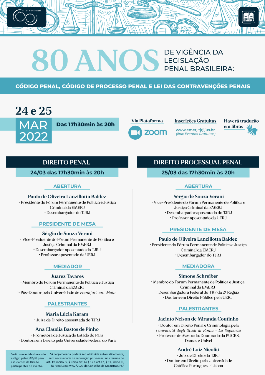 80 anos de vigência da legislação penal brasileira: Código penal, código de processo penal e lei das contravenções penais - Dia 2