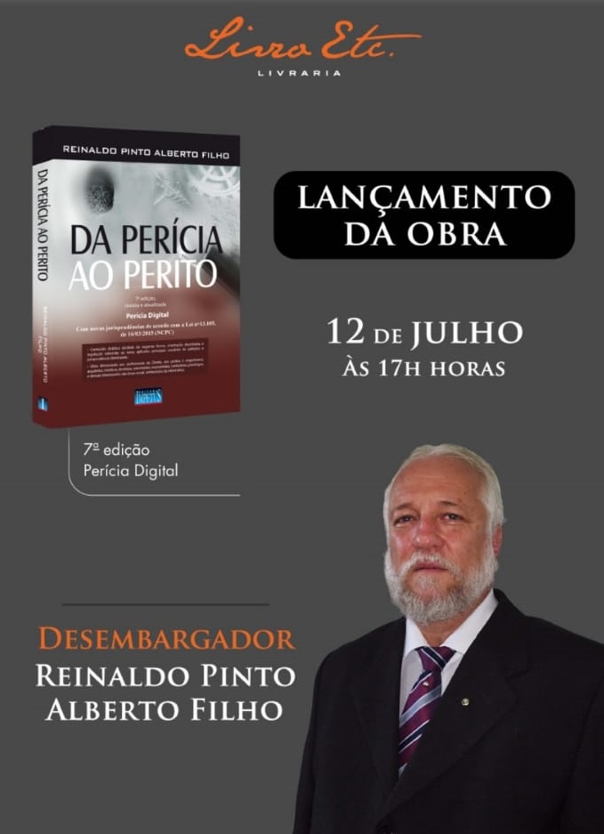 Uma abordagem de forma clara e prática dos principais aspectos da prova pericial e da atividade do perito no processo, incluindo as recentes modificações trazidas pelo novo Código de Processo Civil e legislação posterior, além de novos julgados e doutrinas. Assim é a 7ª edição do livro “Da Perícia ao Perito”, do desembargador Reinaldo Pinto Alberto Filho, que será lançado no próximo dia 12, às 17h, na Livraria Livro Etc., localizada na Av. Ernani do Amaral Peixoto, 507, loja 5, no Centro de Niterói.