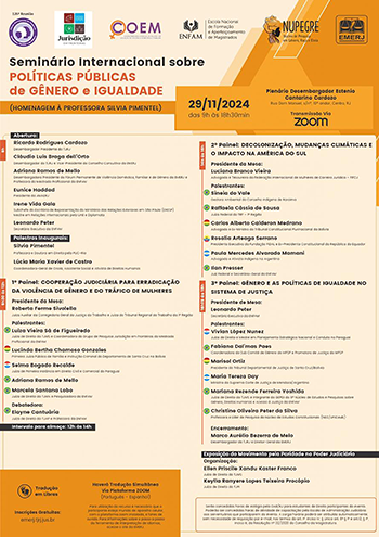 I Encontro Grupos Reflexivos Com autores de Violência Doméstica  Descrição: Encontro dos Grupos Reflexivos e Responsabilizantes para Homens Autores de Violência do Estado do Rio de Janeiro.  📅 Data e Horário 01 DEZ (1 de Dezembro)  10h às 17h (com intervalo das 13h às 14h30)  📍 Local Auditório Desembargador José Navega Cretton  Dom Manuel, s/nº | 7º andar  Palácio da Justiça | Centro | RJ  👥 Público-Alvo Equipes técnicas que atuam nos juizados de violência doméstica, EITCRMs, residentes e estagiários do Tribunal de Justiça do RJ, servidores e profissionais que atuam como facilitadores dos diversos grupos reflexivos realizados no território do Rio de Janeiro (SEAP, Polícia Militar, prefeituras, CEJUSCs), gestores das secretarias da Mulher dos Municípios e do Estado.  🔗 Inscrição e Programação Inscreva-se pelo link: https://forms.office.com/r/VjQejRfu3i (ou acesse o QR Code)  Acesse a programação.Mulheres Negras na Sociedade Brasileira Contemporânea rompendo as Barreiras da Invisibilidade - Data e Horário 27 NOV 9h às 13h30 - nscrições Inscreva-se pelo link ou acesse: https://forms.office.com/r/JzNDRIgvz9Logos: PJERJ, Museu da Justiça, COEM, GT Mulheres Negras e ESAJ. Programa: Parcerias do Museu. Título: Roda de Conversa – Mulheres Negras e Violência Obstétrica.Fátima Maria dos Santos – Enfermeira, servidora pública e ativista com atuação voltada à promoção dos direitos das mulheres e à saúde pública.   Leila Linhares – Advogada. Professora Emérita da EMERJ e Professora do Curso de Pós Graduação Gênero e Direito da mesma instituição.   Isabel Cruz – Professora Titular da UFF, com doutorado em Enfermagem (USP) e atuação na docência e pesquisa desde 1994.   Tatiana Henriques – Graduada em Biomedicina pela UNIRIO (2010), com Mestrado (2014) e Doutorado (2018) em Saúde Coletiva/epidemiologia pela UERJ. Professora adjunta da UERJ - IMS. Faz parte do grupo de pesquisa "Saúde da Mulher, da Criança e do adolescente" da Fundação Oswaldo Cruz/ENSP.  30 de julho, quarta-feira, das 14h às 17h   Sala Multiuso do Museu da Justiça   Edifício Des. Caetano Pinto de Miranda Montenegro     Rua Dom Manuel, 29, térreo – Centro, Rio de Janeiro   Entrada Franca | Capacidade: 60 pessoas   Transmissão e informações: https://www.tjrj.jus.br/web/museu/eventos   Classificação indicativa: Livre