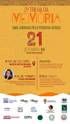 Dentro do propósito de promoção de cidadania, educação, cultura e inclusão social, o TJRJ, através dos COGENs, criaram a atividade prática “Trilha da Memória: Uma Jornada pela Pequena África”, baseada no Decreto nº 34.803 de 29 de novembro de 2011, que cria o Circuito Histórico e Arqueológico de Celebração da Herança Africana.