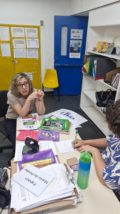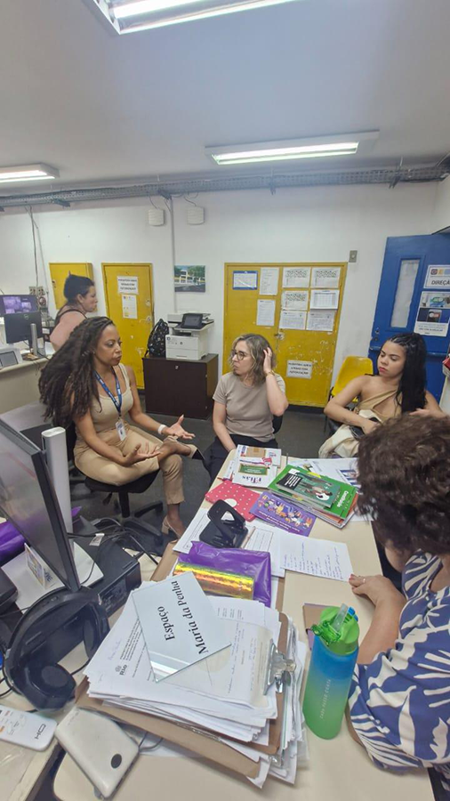 Realizar Visitas técnicas nas escolas juntamente com os setores envolvidos no programa composto por representantes do Tribunal de Justiça, da Secretaria Municipal de Educação e da Secretaria da Mulher. Na visita ocorre a entrega dos materiais apresentação do programa. Além de conhecer o espaço físico e conhecer melhor a comunidade escolar.