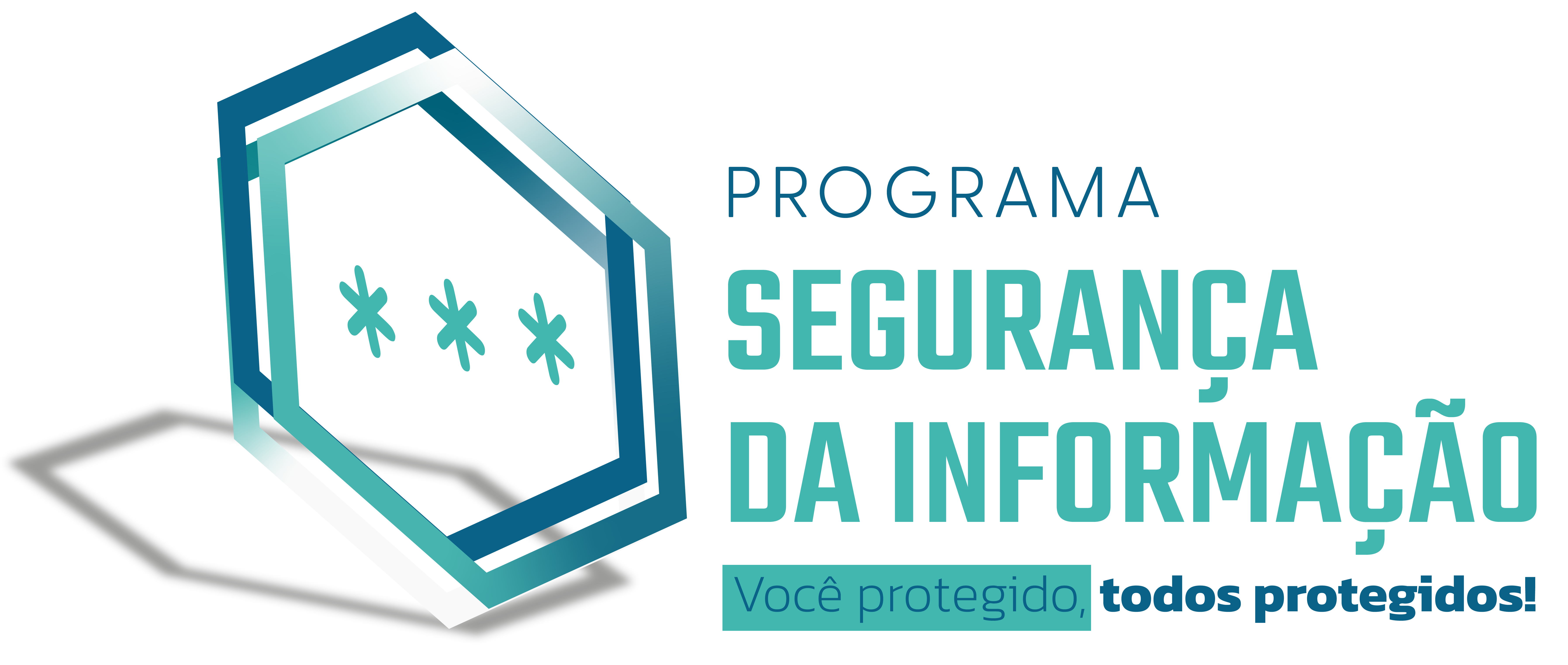 logomarca do programa segurança da informação. imagem: dois losangulos, um verde e um azul entrelaçados com tres asteriscos no meio que significam senha segura.mascote da segurança da informação