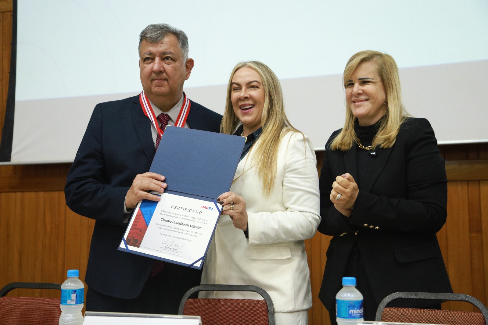 O corregedor recebeu a Medalha Evandro Lins e Silva. A comenda é concedida aos profissionais do Direito que se destacam pelos serviços prestados à advocacia fluminense e em defesa do Estado Democrático de Direito.