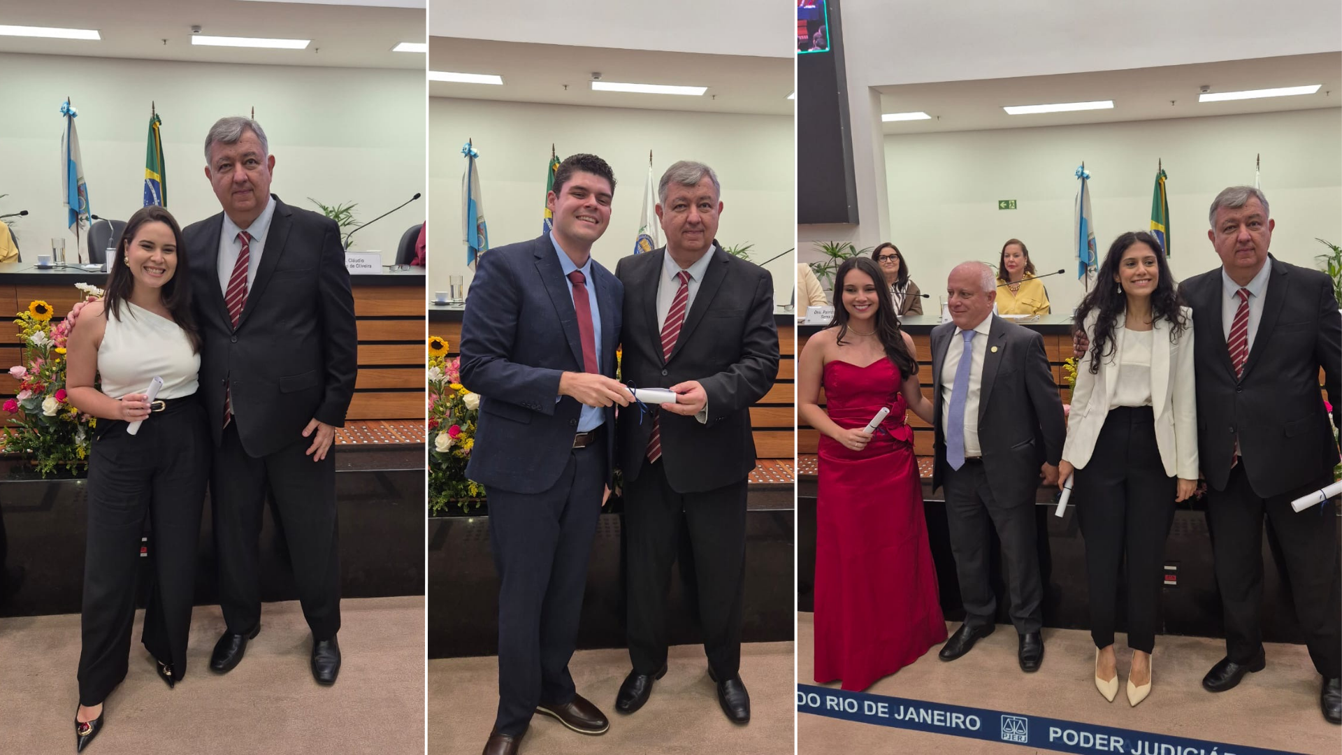Nessa sexta-feira, 12 de dezembro, a Escola da Magistratura promoveu a cerimônia de formatura dos alunos do 2º semestre de 2025 do Curso de Especialização em Direito Público e Privado, no auditório Desembargador Antônio Carlos Amorim.