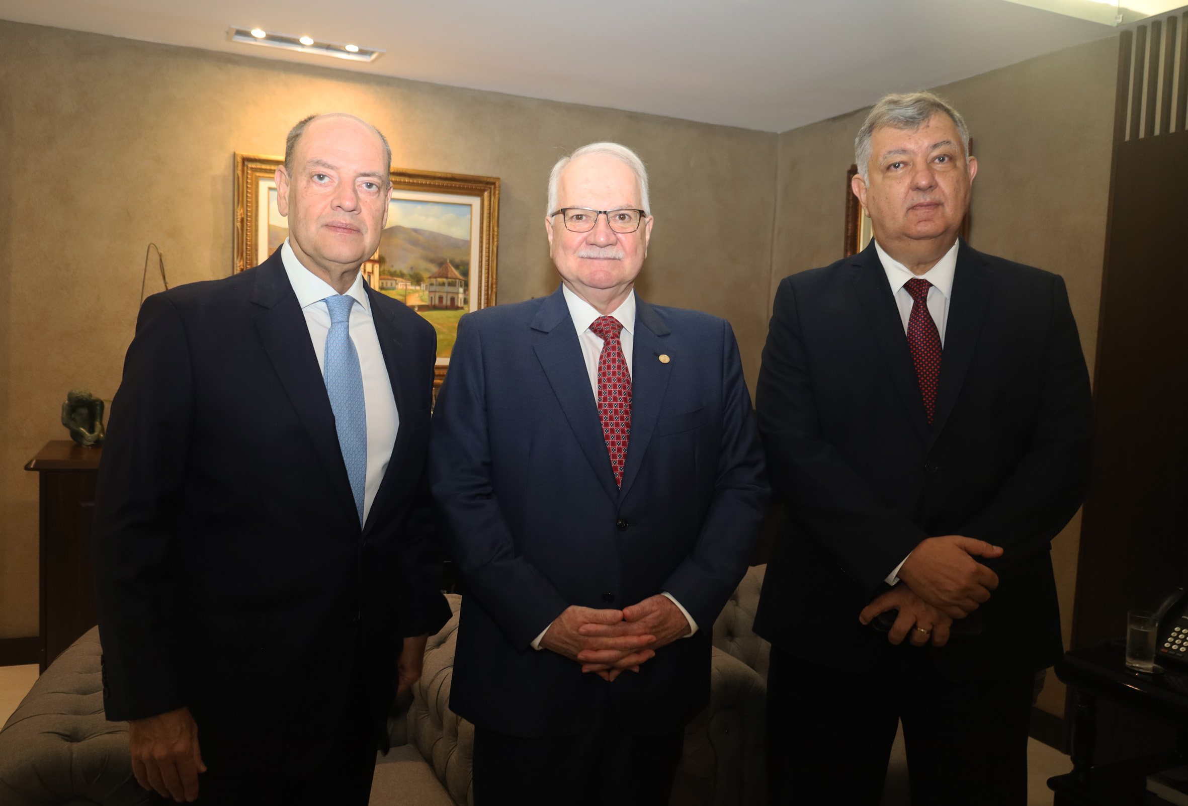 O corregedor-geral da Justiça, desembargador Cláudio Brandão de Oliveira, participou da reunião dedicada ao atendimento de vítimas de violência de Estado no Sistema de Justiça, nesta sexta-feira, 10 de abril, ao lado do presidente do Conselho Nacional de Justiça (CNJ) e do Supremo Tribunal Federal (STF), ministro Luiz Edson Fachin; e do presidente do Tribunal de Justiça do Rio de Janeiro (TJRJ), Ricardo Couto de Castro.