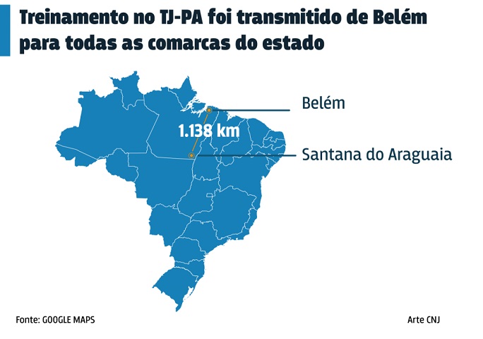 No Pará, o treinamento promovido para juízes de Varas Criminais, Varas de Execução Penal e Varas Cíveis da Região Metropolitana de Belém foi transmitido para todas as comarcas do estado, o segundo maior do Brasil, com área de 1,248 milhão de quilômetros quadrados. A transmissão alcançou, por exemplo, Santana do Araguaia que fica a 1.138 quilômetros ao sul da capital Belém, onde a capacitação ocorreu entre 28 de fevereiro e 2 de março.