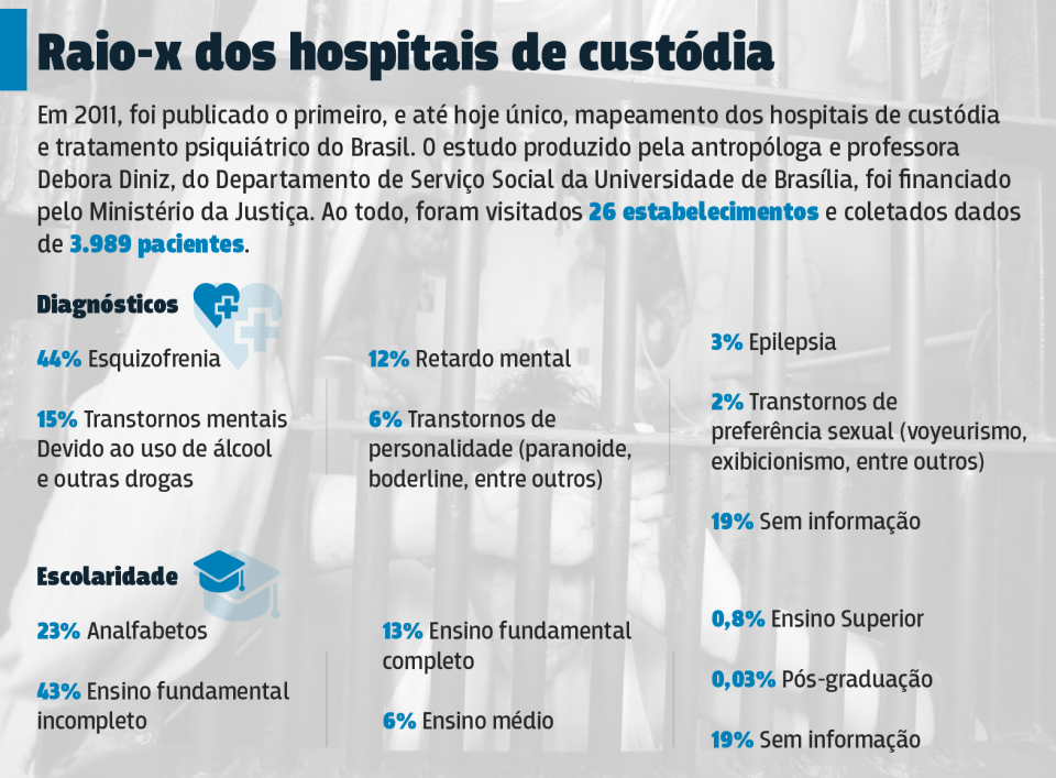 Como Daniel, outras 3.134 pessoas cumprem medidas de segurança no Brasil, de acordo com dados coletados no sistema Geopresídios em 8/10/2018. Incapazes de responder pelos seus atos, de acordo com a lei, elas precisam de tratamento, e não de punição. O Código Penal estabelece que o prazo mínimo de internação a ser estabelecido pelo juiz é de um a três anos, mas não prevê período máximo de duração.