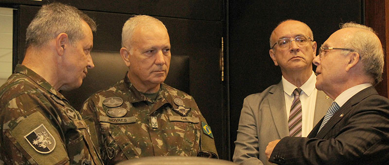 Nesta quarta-feira (14/06), o presidente do Tribunal de Justiça do Estado do Rio de Janeiro, desembargador Ricardo Rodrigues Cardozo, recebeu em seu gabinete o comandante do Exército Brasileiro, general de exército Tomás Miguel Miné Ribeiro Paiva e o comandante Militar do Leste, general do exército André Luis Novaes Miranda.