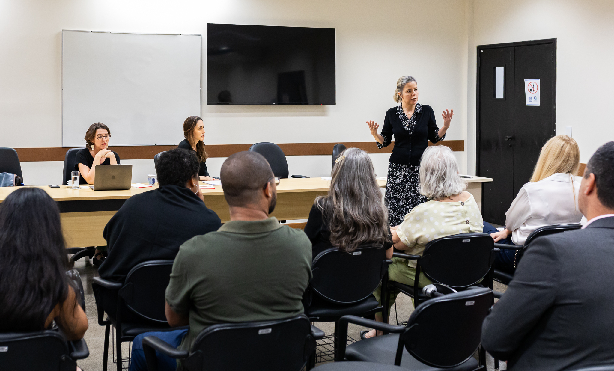 As professoras trouxeram um exemplo de caso baseado em um processo que haviam trabalhado anos atrás, mantendo, porém, a confidencialidade dos envolvidos. “A nossa ideia hoje foi trazer um caso e, a partir desse caso concreto, pensá-lo e desdobrá-lo através de três abordagens distintas, que foram a Negociação Integrativa, a Mediação de Conflitos e a Justiça Restaurativa”, detalhou a coordenadora adjunta do CEMA, professora Mia Schneider.