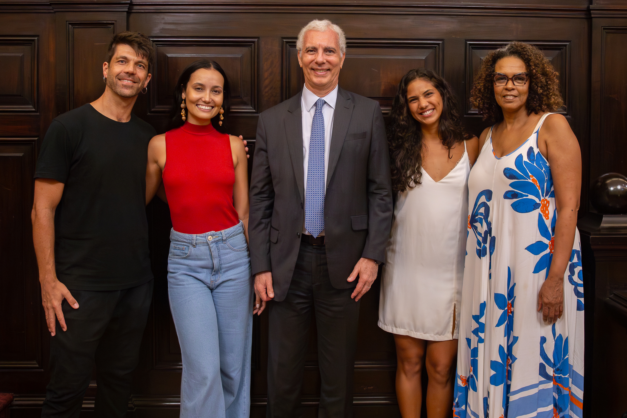 Desembargador Wagner Cinelli com o elenco da peça