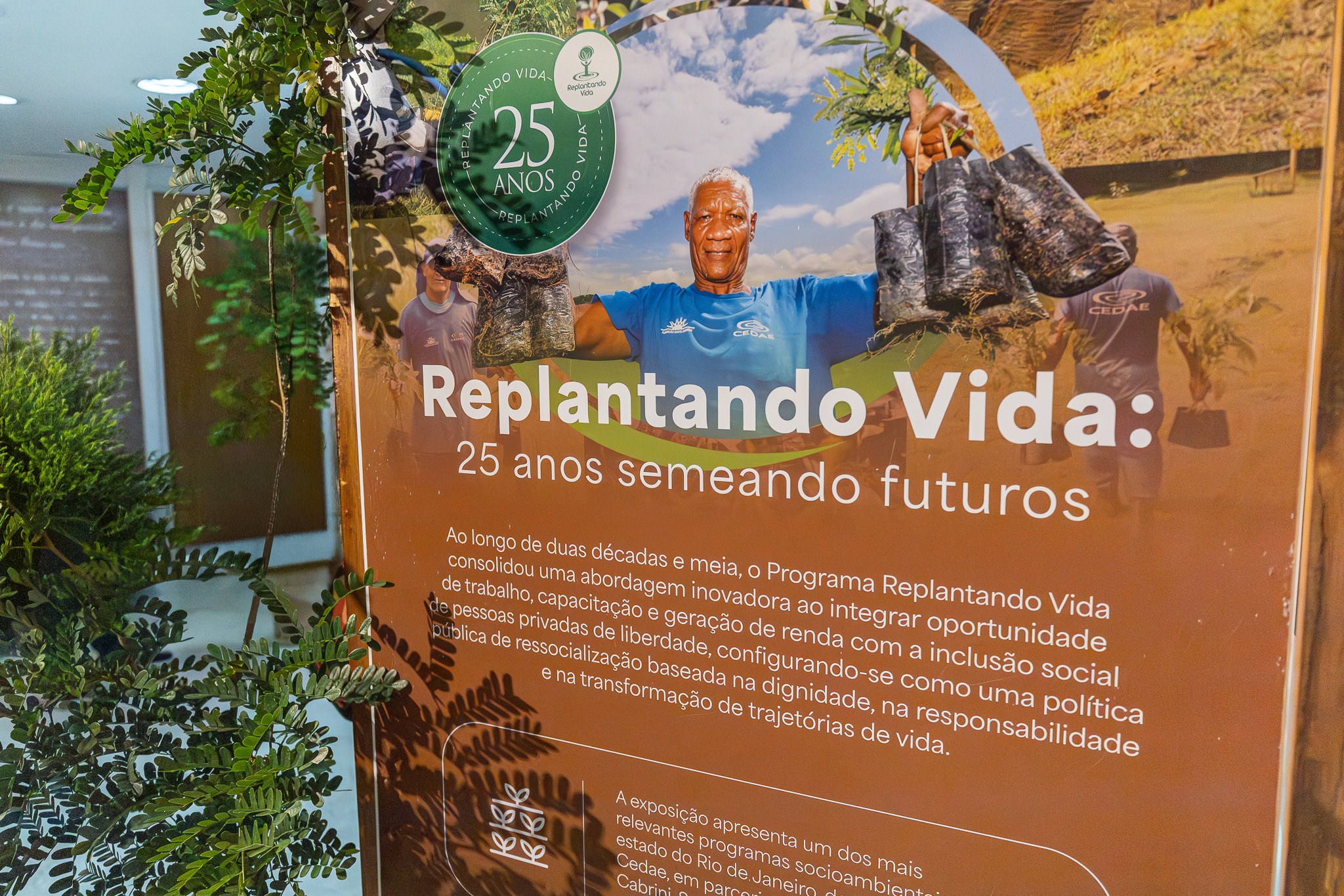 A mostra fotográfica "Replantando Vida – 25 Anos Semeando Futuros" celebra uma política pública que se tornou referência ao unir ressocialização e restauração ambiental. Realizado em parceria com a Vara de Execuções Penais (VEP), a Fundação Santa Cabrini e a Secretaria de Estado de Administração Penitenciária (Seap), o programa é hoje o maior empregador de mão de obra prisional do Rio de Janeiro, contando com cerca de 550 trabalhadores ativos.