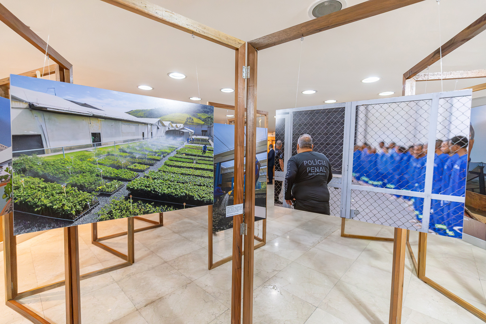 A exposição detalha a cadeia produtiva estruturada no âmbito do programa. Além do reflorestamento, que inclui desde a coleta de sementes até o plantio e manutenção, os participantes atuam na fabricação de uniformes, manutenção predial, construção civil e apoio operacional. O programa conta ainda com três viveiros instalados em unidades prisionais, garantindo que mesmo aqueles que ainda não têm acesso ao trabalho externo possam participar das atividades e receber capacitação profissional.