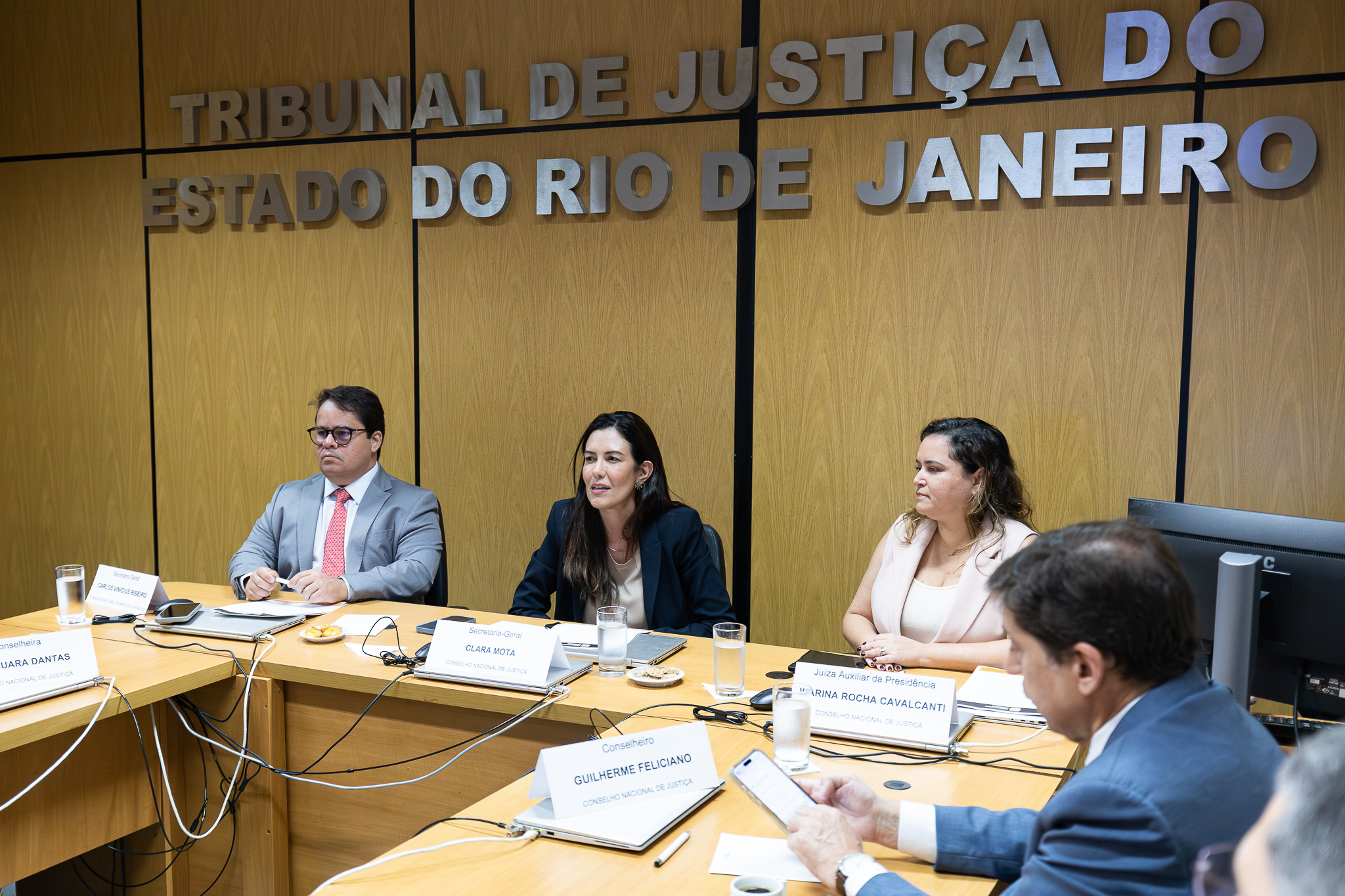 As desembargadoras Katya Maria Monnerat, Jacqueline Lima Montenegro e Suimei Meira Cavalieri, além da juíza auxiliar da Presidência do TJRJ Paula Feteira Soares e o juiz Tiago Fernandes de Barros, também do Tribunal de Justiça do Rio de Janeiro, participaram do encontro, entre outras autoridades.