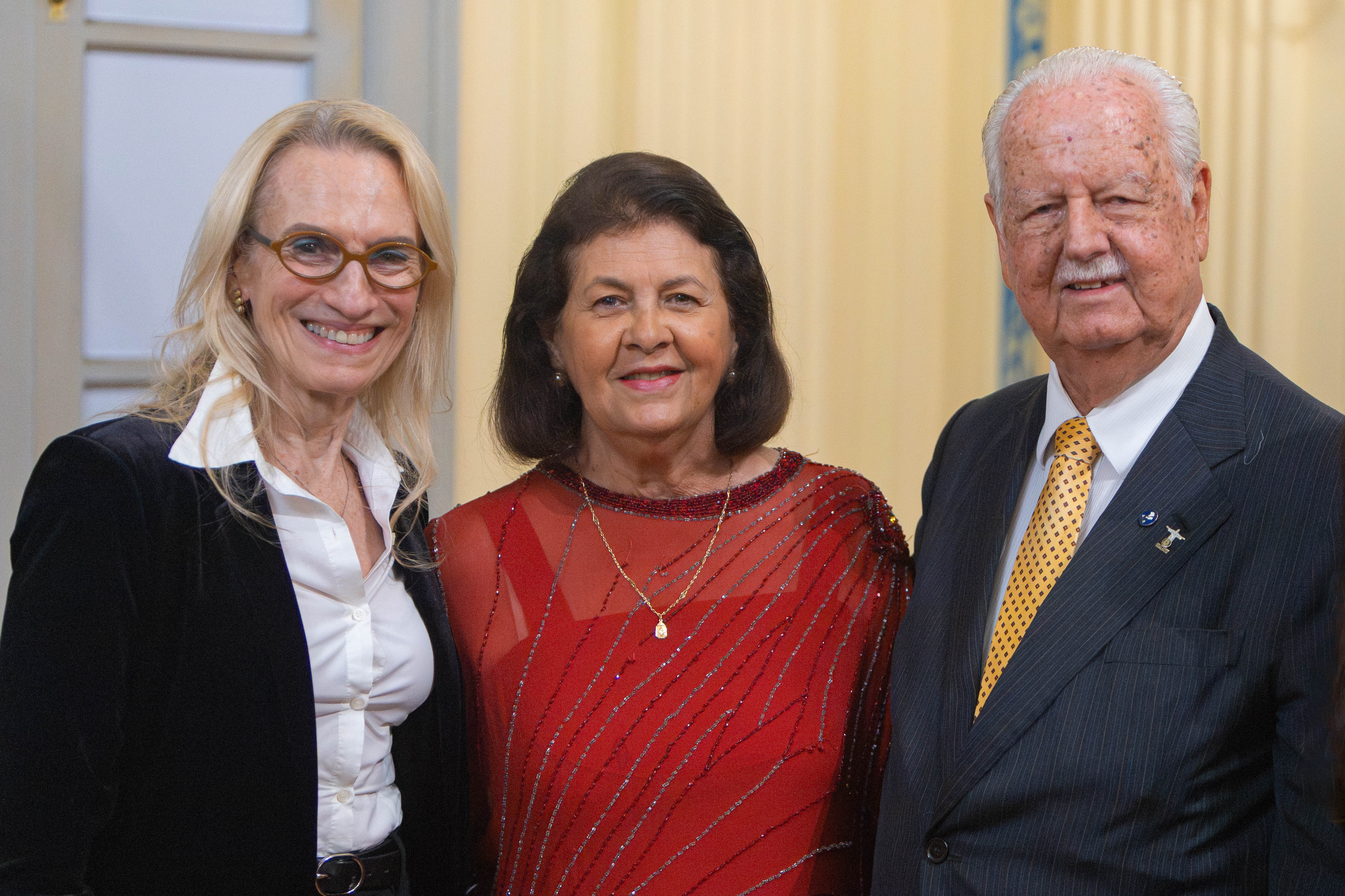 A desembargadora Cristina Tereza Gaulia, a pianista Carol Murta Ribeiro e o desembargador aposentado José Carlos Schmidt Murta Ribeiro após a apresentação