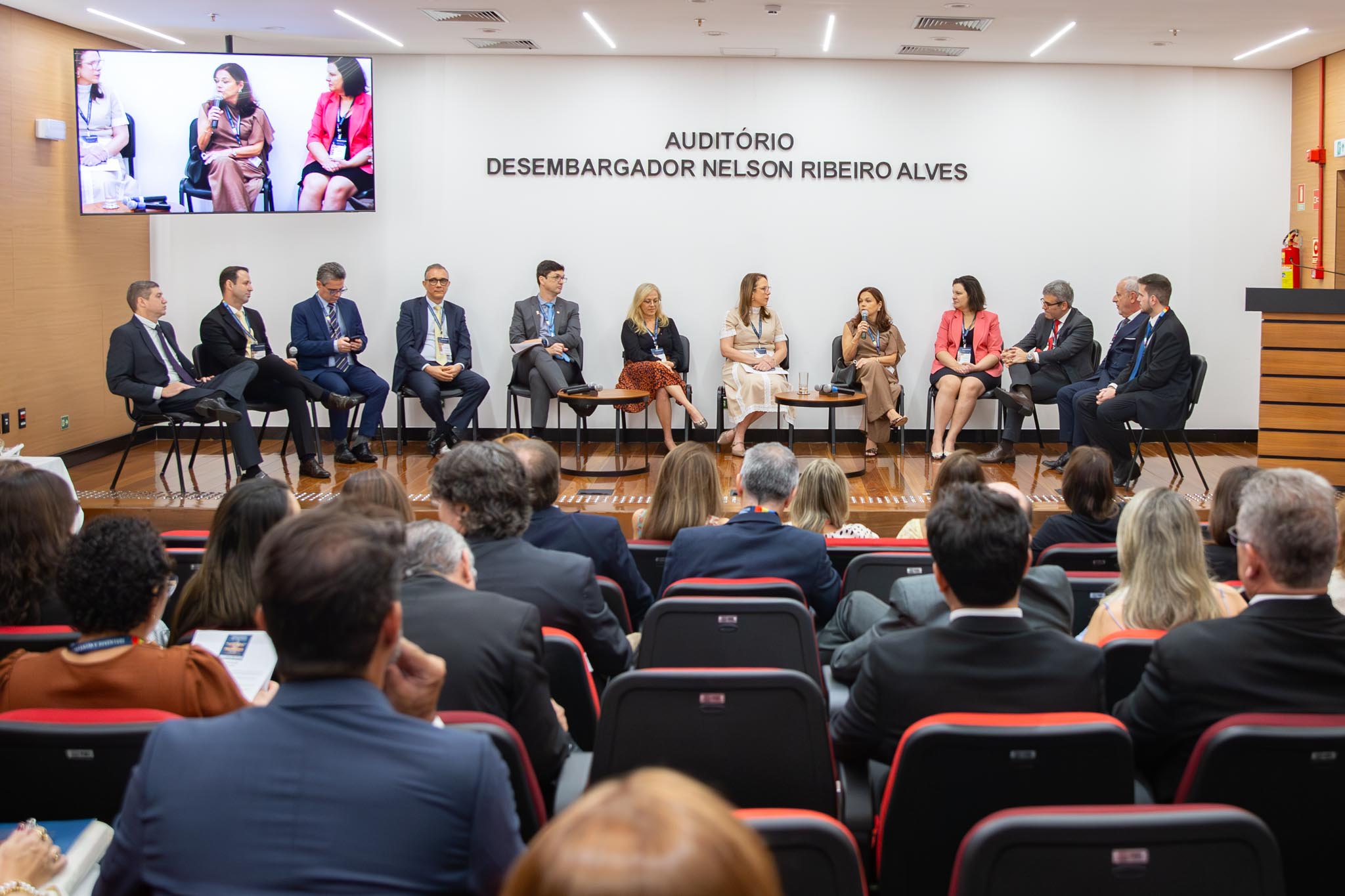 A mesa também foi composta pelo juiz do Tribunal de Justiça do Tocantis Adriano Gomes de Melo Oliveira, presidente do Colinj; e pela juíza do Tribunal de Justiça de Goiás Célia Regina Lara.