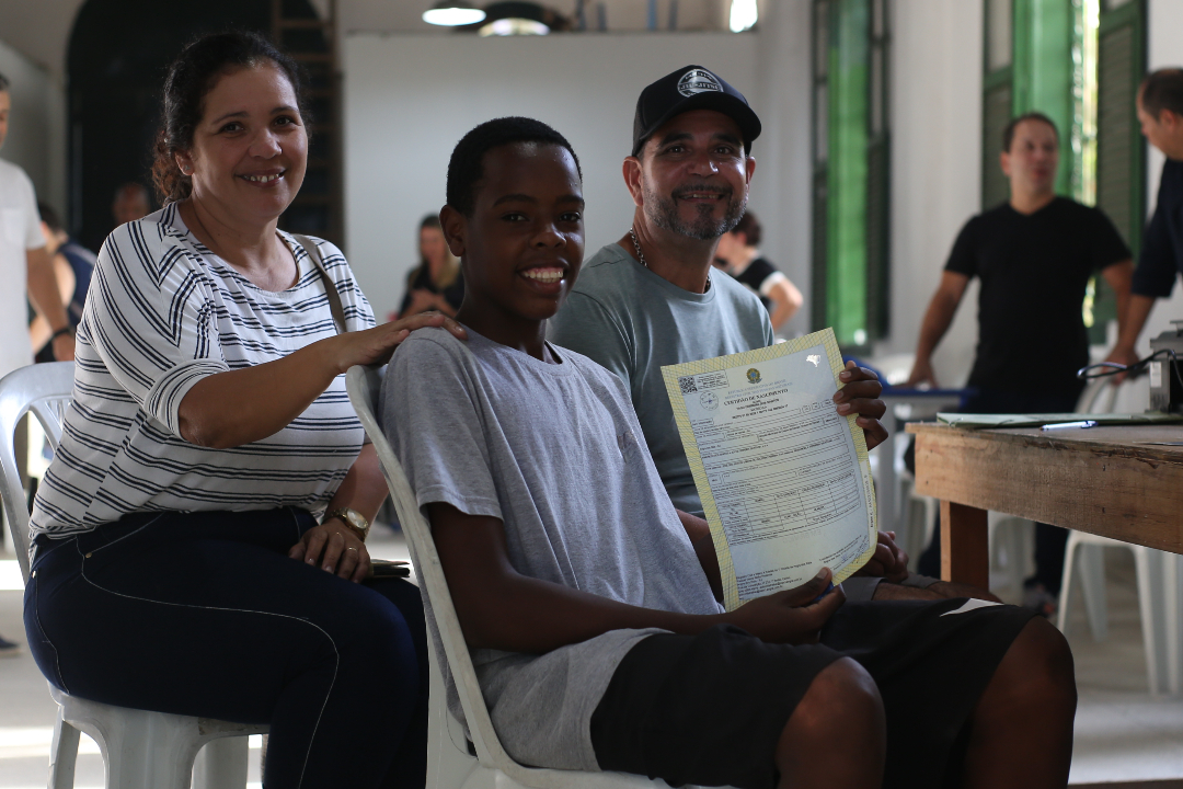 Quem também se beneficiou dos serviços coletivos prestados pelo Justiça Itinerante foi Yago dos Santos, por que não um futuro craque de futebol ou futevôlei? Aos 16 anos, ele finalmente fez o registro de nascimento tardio e deixou o espaço com a identidade, tão importante, em mãos.