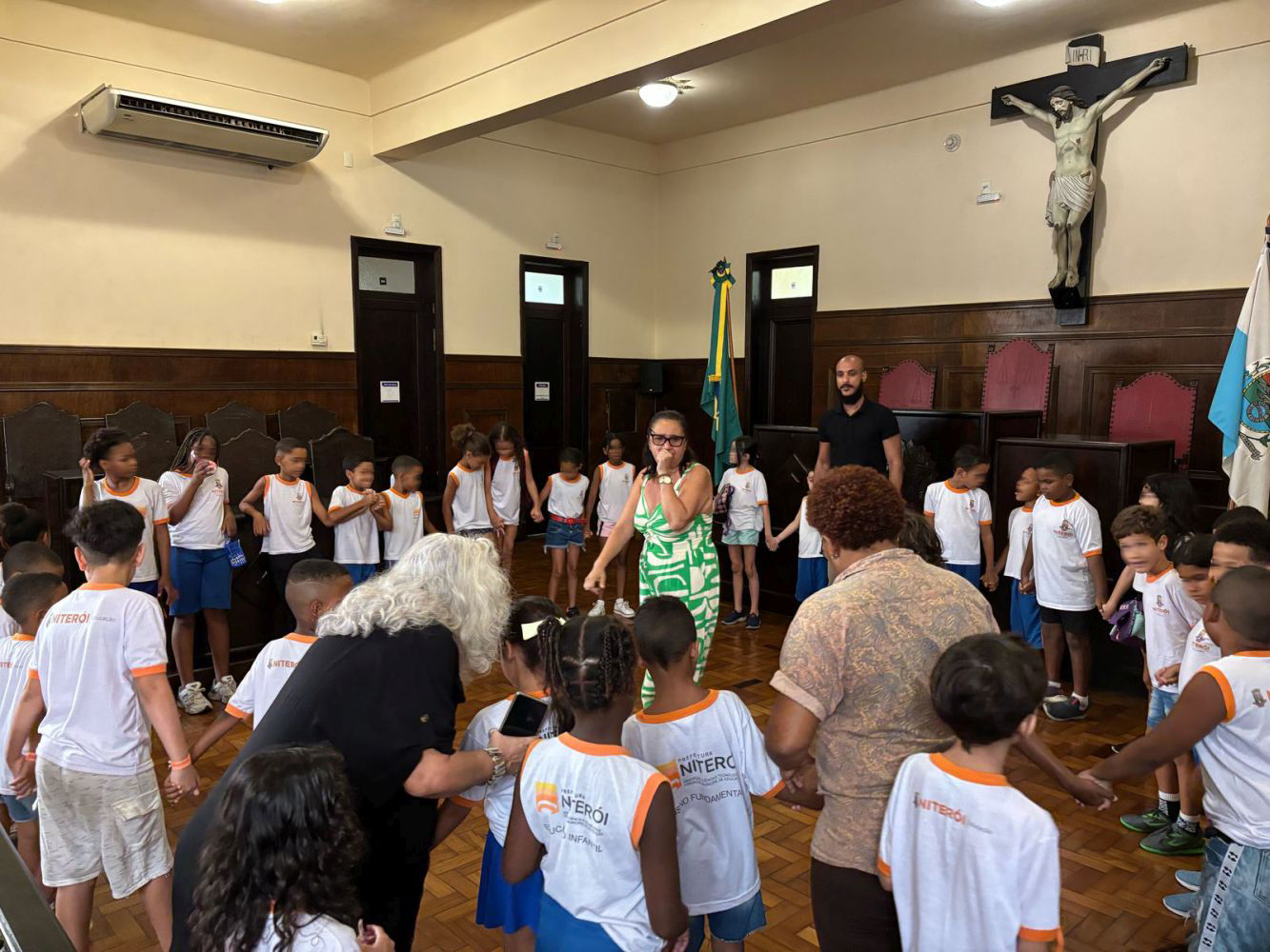 Após o recital, os alunos participaram de uma oficina promovida pelo Setor Educativo do Museu da Justiça- sede Niterói. A atividade proporcionou uma vivência interativa, estimulando a percepção musical e o contato lúdico com a música. A iniciativa reforça o compromisso de fomentar educação museal de qualidade e a formação de novos públicos, promovendo o encontro entre a música, a história e a educação.