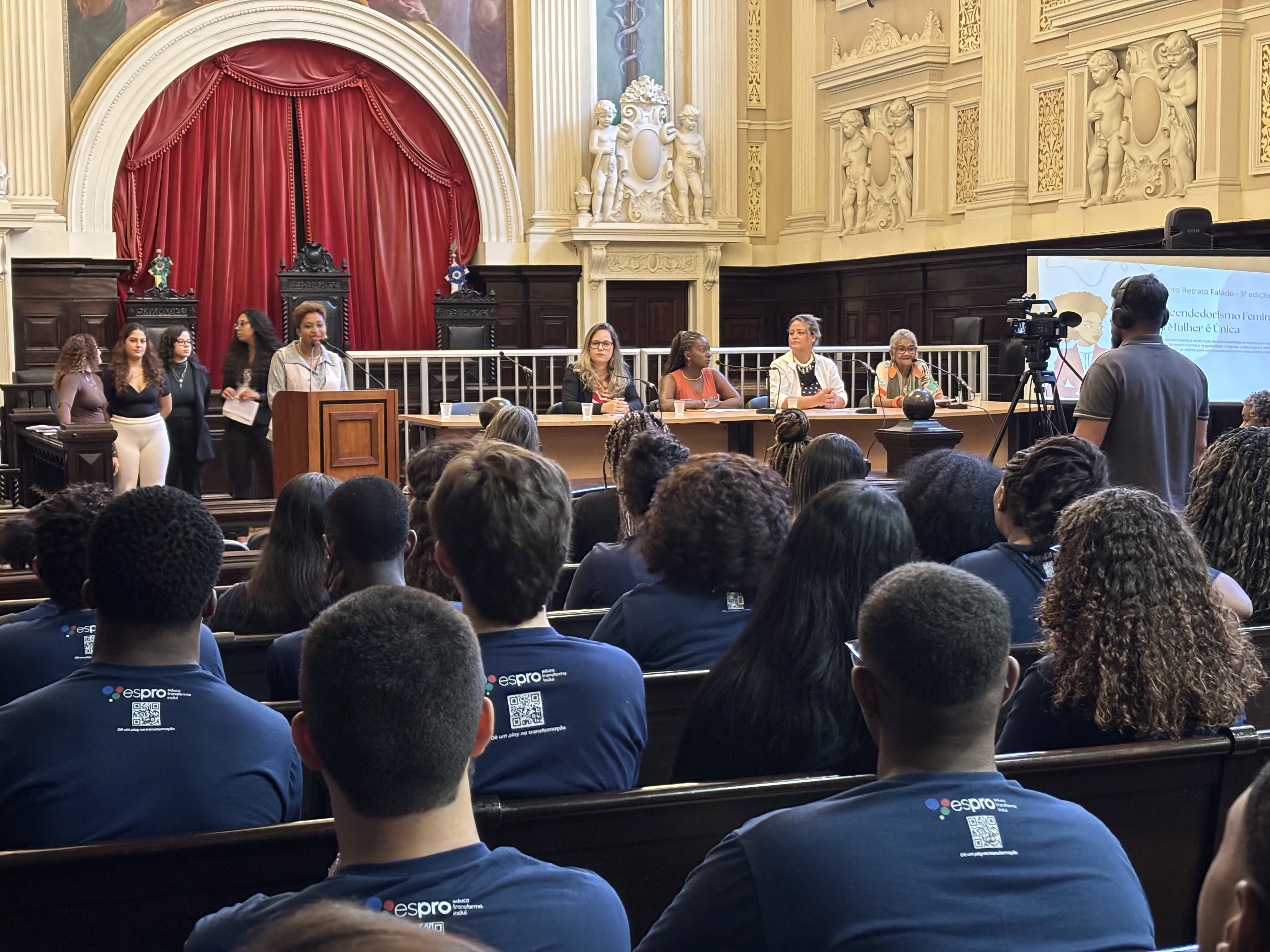 O seminário "Empreendedorismo feminino: toda mulher é única", realizado em parceria do Museu da Justiça com o ESPRO, aconteceu no Salão Histórico do Tribunal do Júri na tarde desta quarta-feira (19). O encontro teve o objetivo de celebrar a identidade e a trajetória de cada mulher empreendedora, promovendo a troca de experiências e valorizando a personalidade e as conquistas individuais. Estiveram presentes Gisele Melo, artista visual, designer e fundadora da Gimello Design, Rosilene Pontes, Executiva e gestora com mais de 20 anos de experiência em implantação e desenvolvimento de Sistemas Integrados de Gestão (ERP), Sara Miranda, ativista de movimentos sociais e Bianca Barreto, especialista em designer de sobrancelhas.