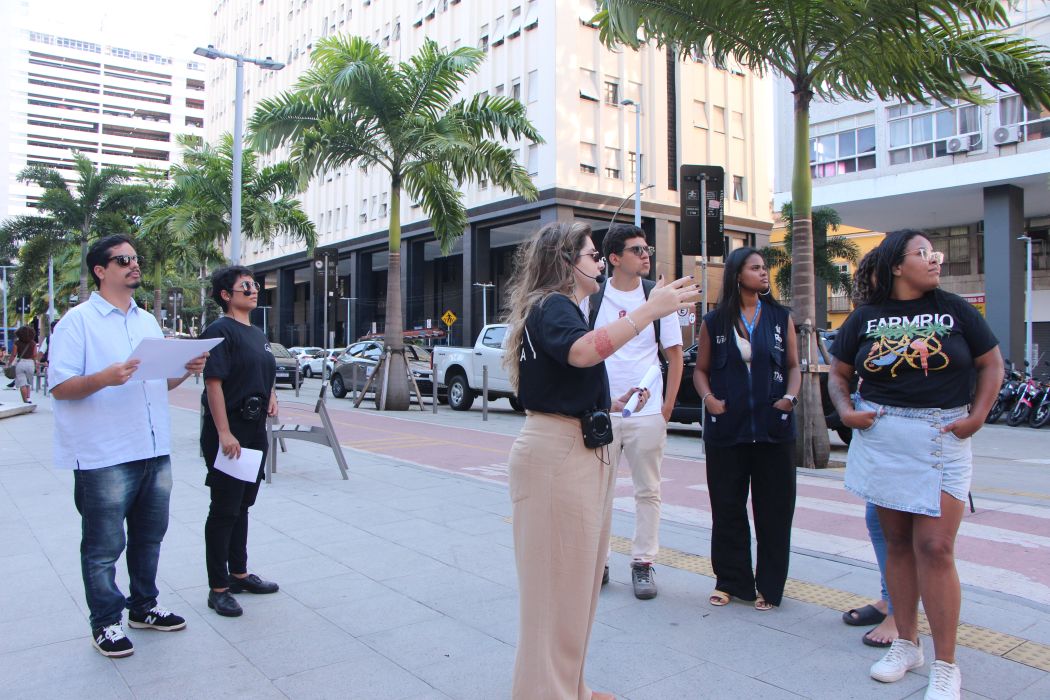 A visita mediada "Ao Redor da Justiça" recebeu mais uma edição nesta terça-feira (24), nas proximidades do Museu da Justiça. As historiadoras Tayná Louise de Maria e Lydia de Carvalho guiaram visitantes pela Rua Dom Manuel na intenção de ir do antigo bairro da Misericórdia até o antigo Paço Real, atual Praça 15 de novembro, para conhecer um verdadeiro lugar de disputas de memórias. Essa visita tem como objetivo conscientizar magistrados, servidores e colaboradores desse território cheio de histórias e memórias da Cidade do Rio de Janeiro, no particular, e do Brasil, no geral.