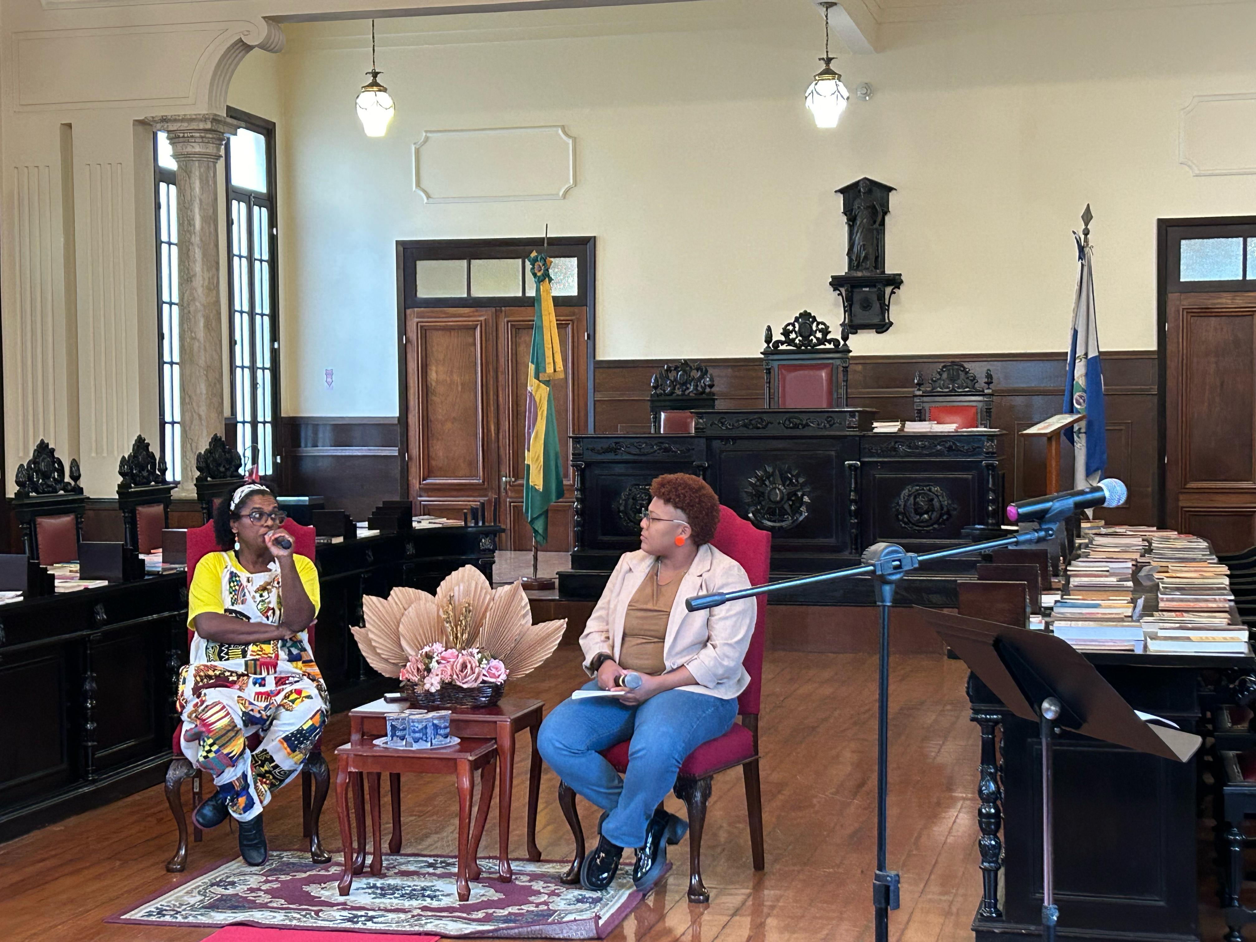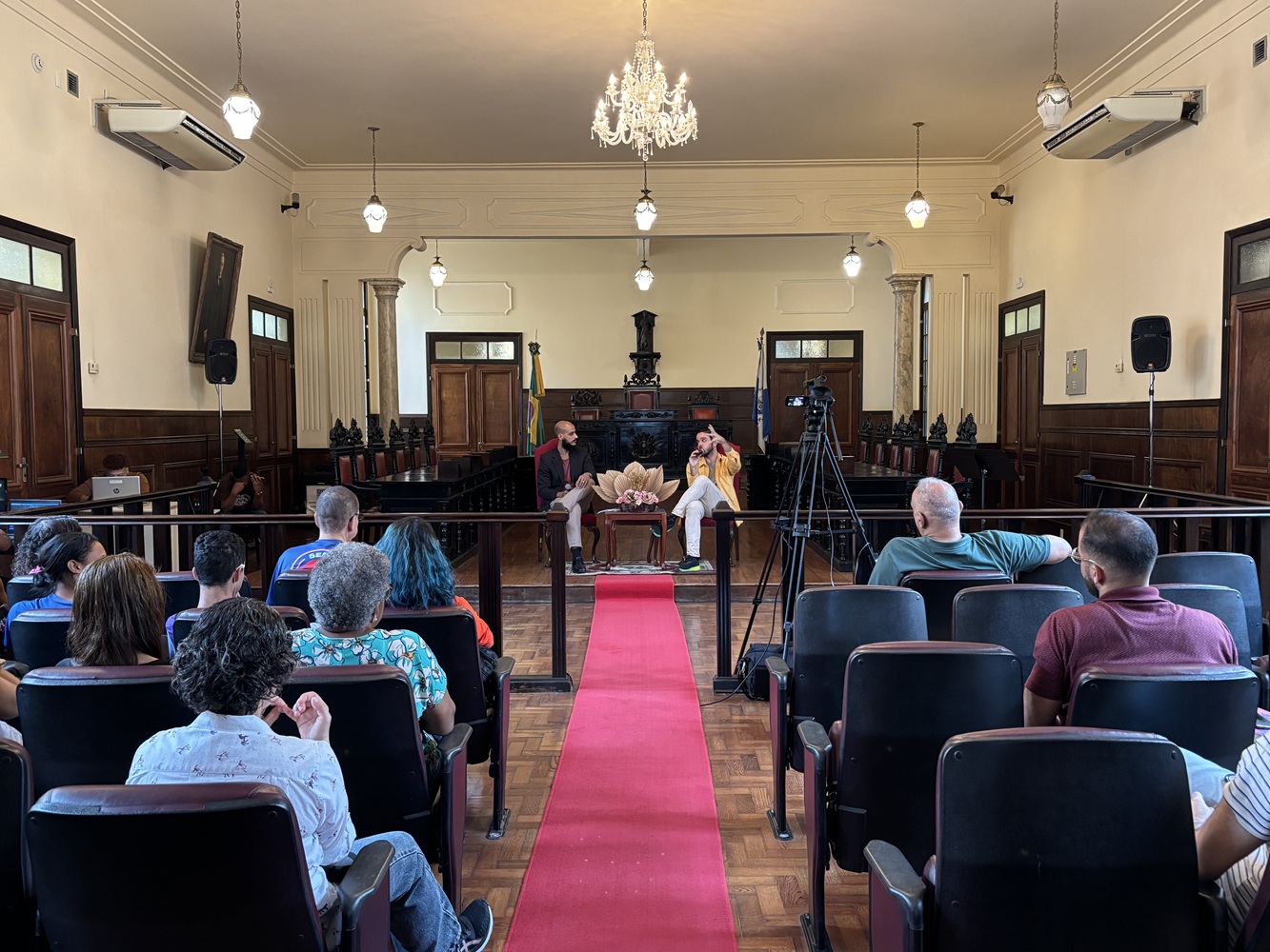 O projeto Troca de Livros recebeu, nesta terça-feira (29), no Museu da Justiça de Niterói, a escritora e ativista cultural Débora Moreno. Alunos do 3º ano da Escola Municipal Alberto Francisco Torres, acompanhados pelo professor Thiago Machado, assistiram atentamente a atividade lúdica e imaginativa proposta pela autora.
