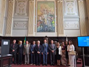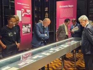 O Museu da Justiça recebeu, nesta quinta-feira, o cônsul da Espanha no Brasil, D. Fernando Fernández-Arias Minuesa, para uma visita mediada aos espaços históricos do Antigo Palácio da Justiça. A atividade, organizada pela ANDES, integrou uma iniciativa de estreitamento das relações institucionais e culturais entre Brasil e Espanha, promovendo o intercâmbio de experiências e o diálogo em torno da memória do Poder Judiciário. Para o Museu da Justiça, mais uma excelente oportunidade de divulgação das exposições em curso para além dos muros do TJRJ.