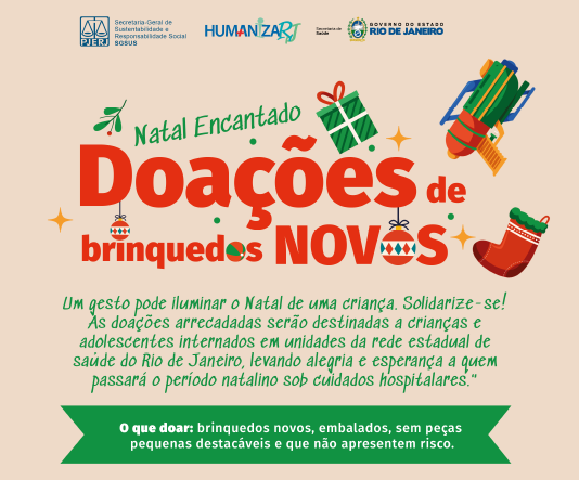 O Tribunal de Justiça do Estado do Rio de Janeiro, em parceria com a Secretaria de Estado de Saúde, convida todos a participar da campanha Natal Encantado, que celebra o espírito de solidariedade e cuidado nesta época especial do ano.