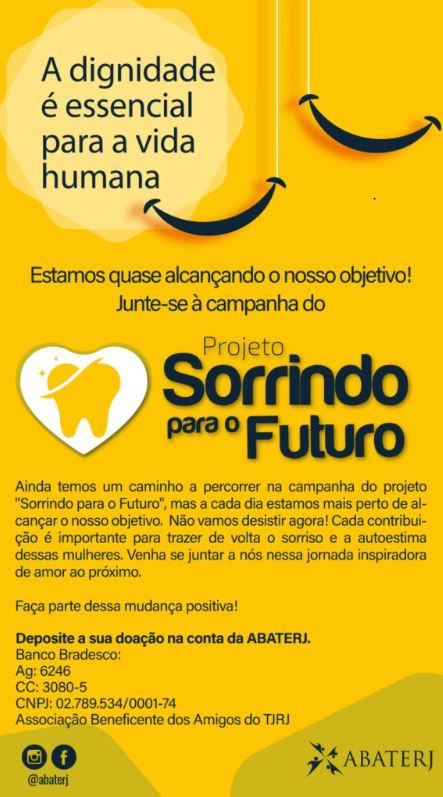 OBJETO: prover saúde bucal para mulheres em cumprimento de penas privativas de liberdade, com foco no resgate da autoestima, dignidade e ressocialização. O projeto foi Idealizado pela Coordenadoria Estadual da Mulher em Situação de Violência Doméstica e Familiar (COEM) em parceria com a Secretaria de Estado de Administração Penitenciária (SEAP), a Secretaria Municipal de Saúde, a ONG SOS DENTAL ASSISTÊNCIA MÉDICA ODONTOLÓGICA (SDAMO) e a Associação dos Amigos do Tribunal de Justiça do Estado do Rio de Janeiro (ABATERJ).